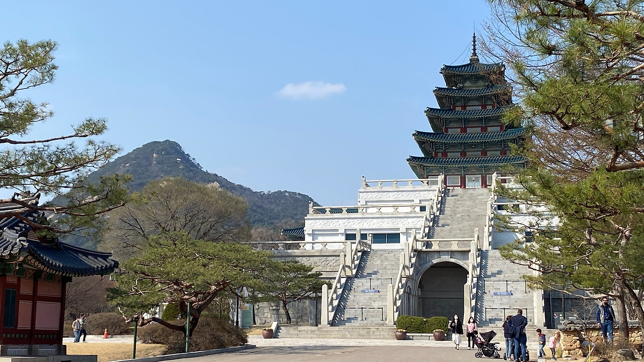 내가 국립민속박물관에서 찍은 사진 중에 가장 좋아하는 사진 중 하나이다. 북악산과 같이 보이는 모습! 국립민속박물관은 입장할 때 입장료가 따로 필요 없었다. 가족 단위 사람들이 많이 보였고, 저마다의 나들이를 즐기는 모습이 좋아 보였다.
