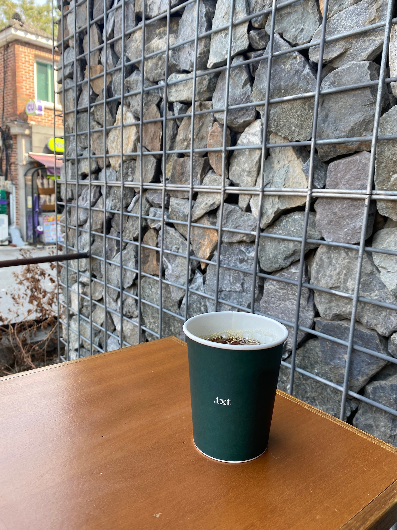 비화림에서 조금 걸으면 나오는 TXT 커피이다. 여기도 예전부터 가보고 싶었던 곳인데 드디어 오게 되었다. 당시에 입이 텁텁해지는 음료는 마시고 싶지 않아서 드립 커피를 마셨던 것 같다. 솔직히 시간이 좀 지나서 기억이 자세하진 않다. 밖에도 의자가 있어서 살랑살랑 봄바람을 맞으며 커피를 마실 수 있었다.