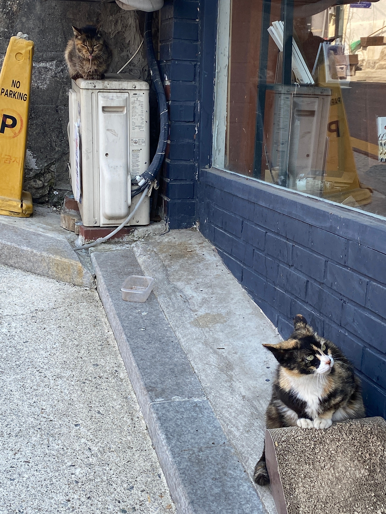 걷다가 발견한 고양이들! '비화림'이라는 서점 앞에 있는 고양이들이었다. 평소에 서점에 가서 책 구경하는 걸 좋아해서 들어가 보고 싶었지만 최근에 사두고 안 읽은 책이 너무 많아서 패스하기로 했다. 다음번엔 꼭 들어가 봐야지!