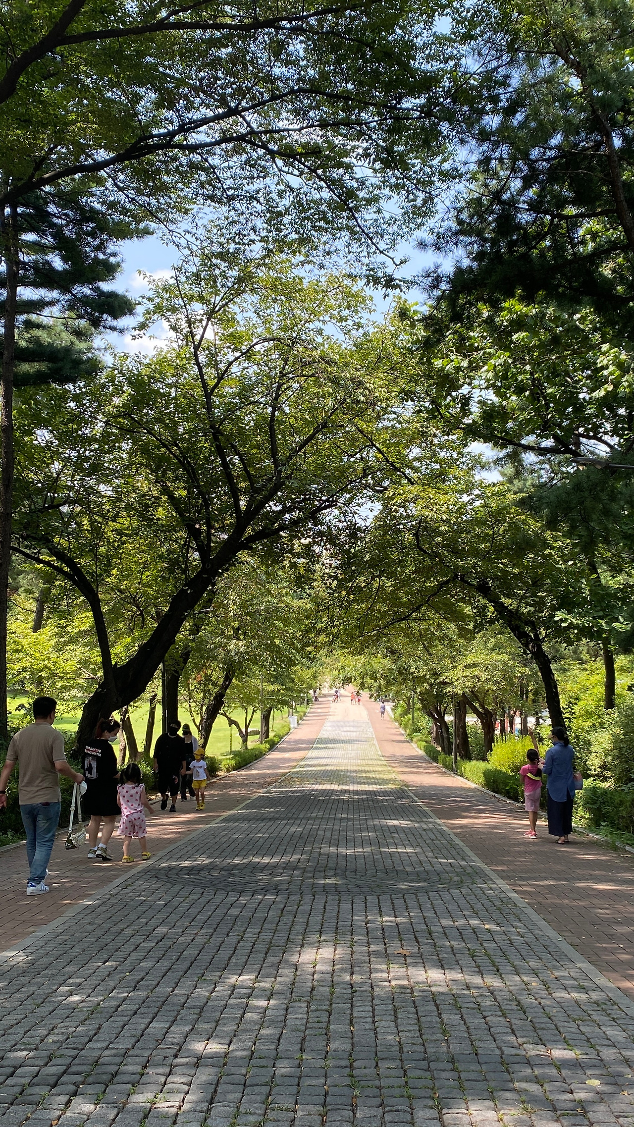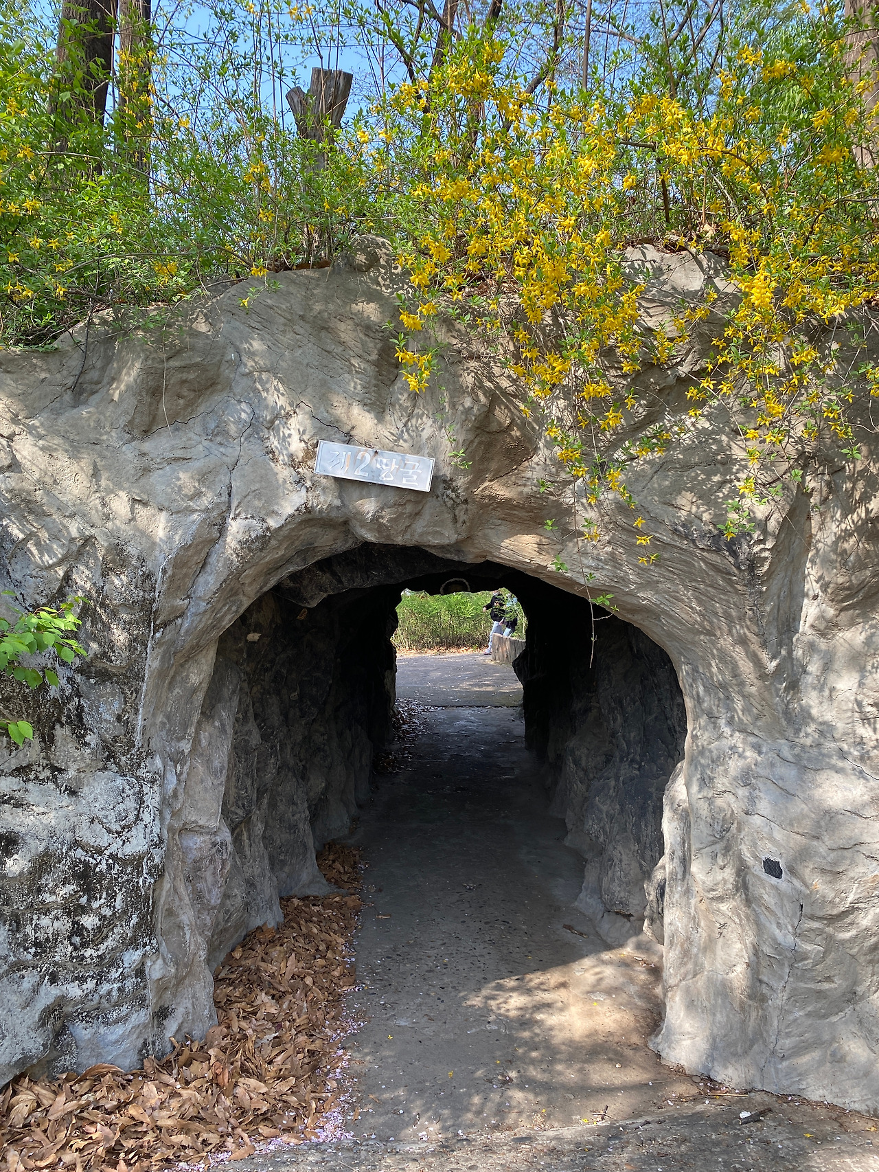어린이대공원을 많이 가봤지만 또 처음 발견한 게 있었다. 바로 땅굴!! 이 땅굴은 1970년대에 발견된 북한의 남침 땅굴을 모형으로 만든 거라고 한다. 예전 같았으면 그냥 지나쳤겠지만 별안간 이진희도 생각이 나버린 나... 그래서 한 장 찍었다. 두 번째 사진은 나무가 모여 있는 게 너무 예쁘고 세 번째 사진은 나무 사이로 난 길에 해와 사람들이 들어와 있는 게 좋다.
