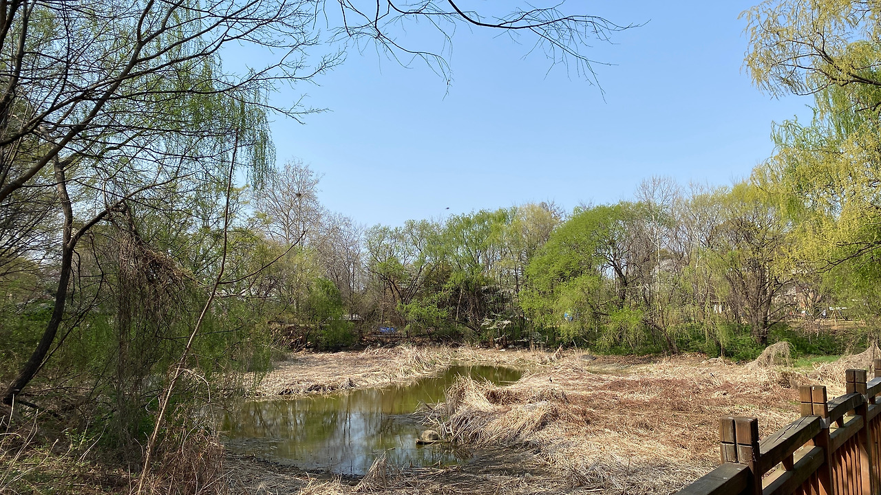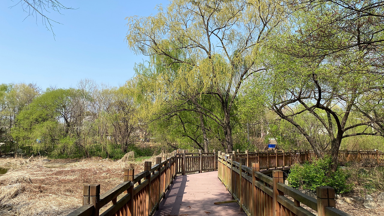 그런데 내가 기대하던 것과는 완전 다른 모습이었다. 나무들은 여기저기 부러졌고, 연못 안의 갈색 풀들은 이리저리 엉켜있었다. 생태연못 출입금지 팻말과 함께 생태환경 복원이 진행된다고 적혀 있었는데 당분간은 멋진 생태연못의 모습을 못 보는 걸까 아쉬운 마음으로 발길을 돌렸다.