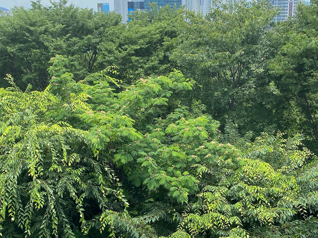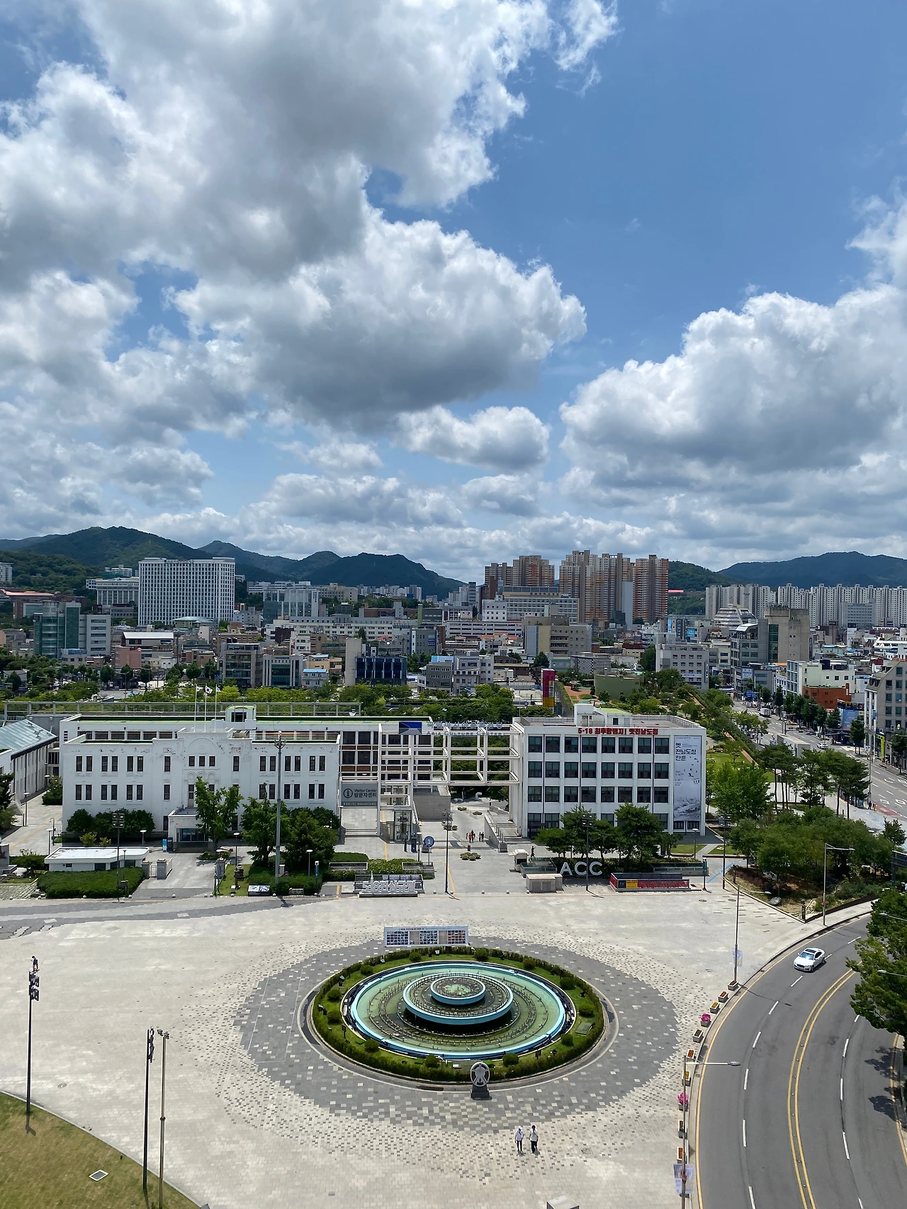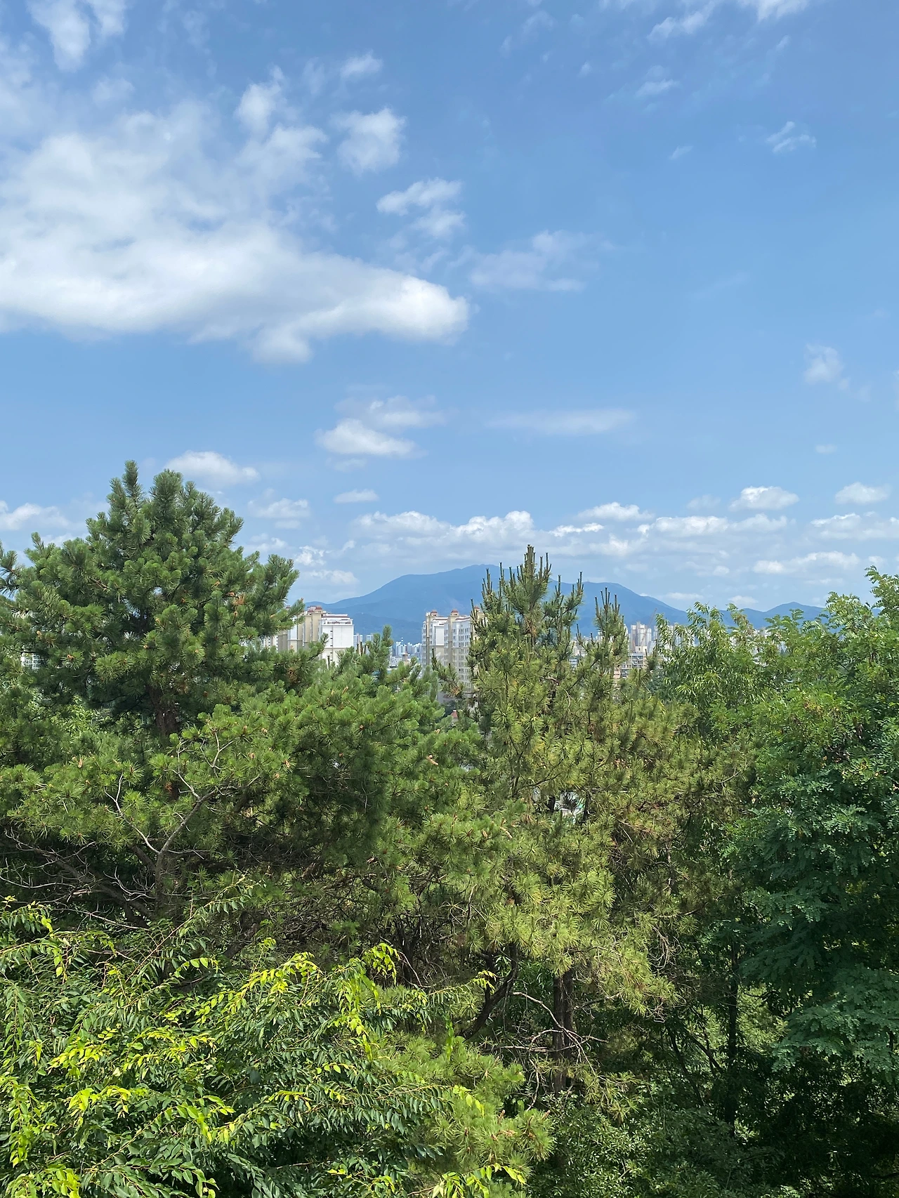 오월루에서 보는 광주 뷰! 사실 한창 여름이었던 6월인지라 나뭇잎에 많이 가려 있었다. 커다란 산이 하나 보였다. 지도를 봤었는데 아마 무등산이었던 것 같다.