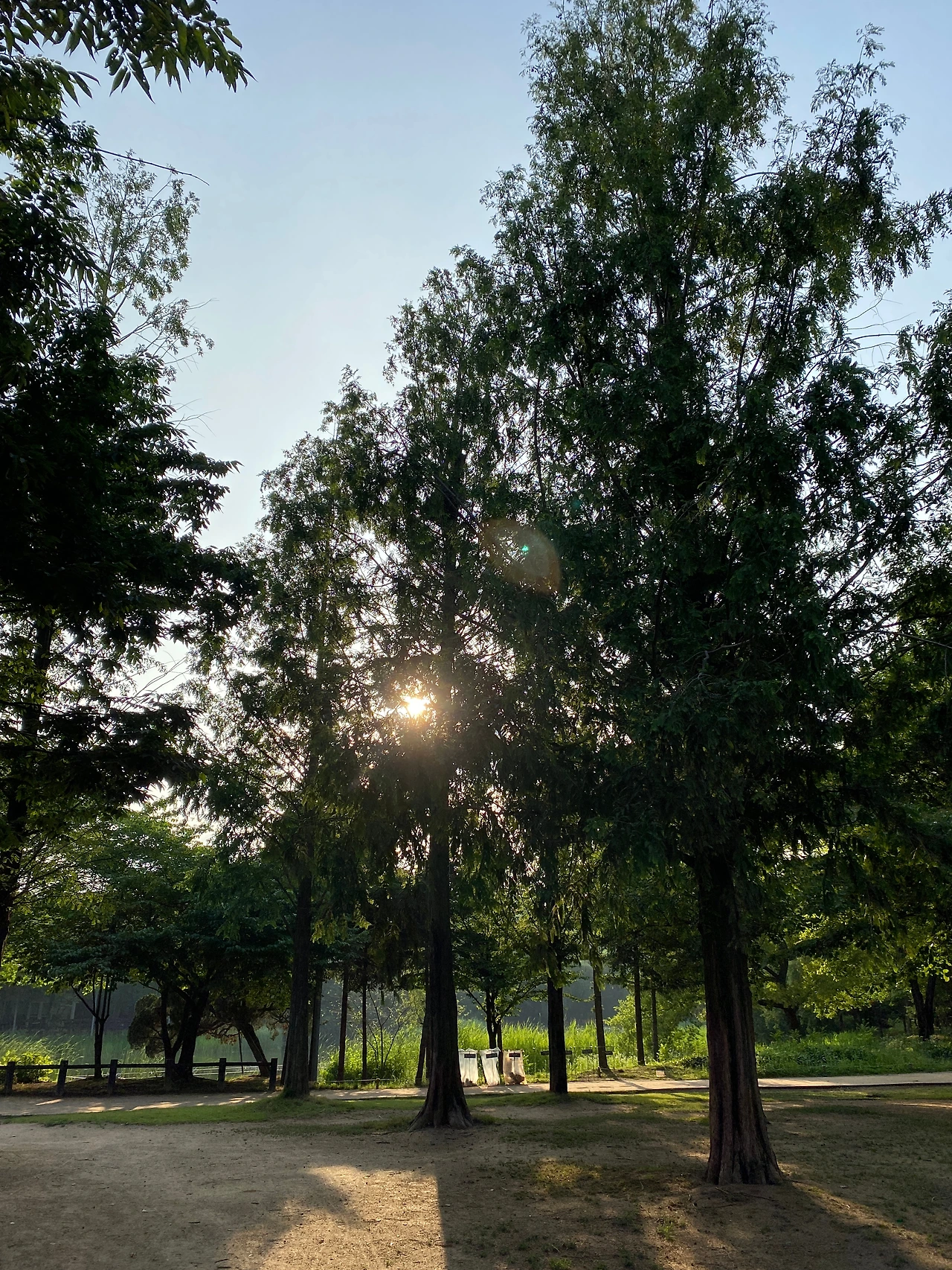 옆쪽에 나란히 서있는 나무들이 더 좋았다. 사실 너무 비슷한 사진이라 한 장만 넣을까 했다가 나무만 있는 사진, 자전거 타는 사람들도 있는 사진 둘 중 하나를 고를 수 없어서 둘 다 넣었다.
