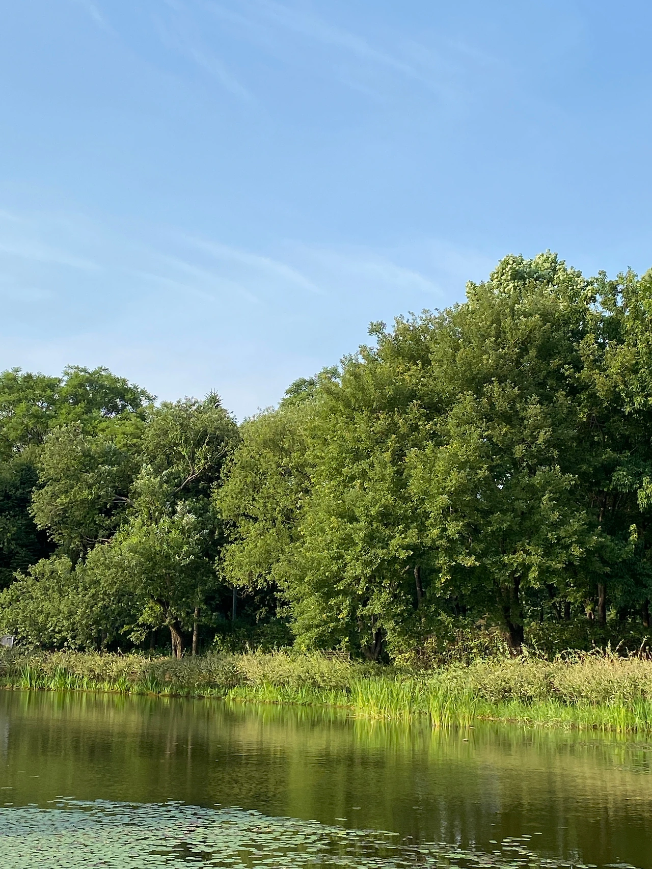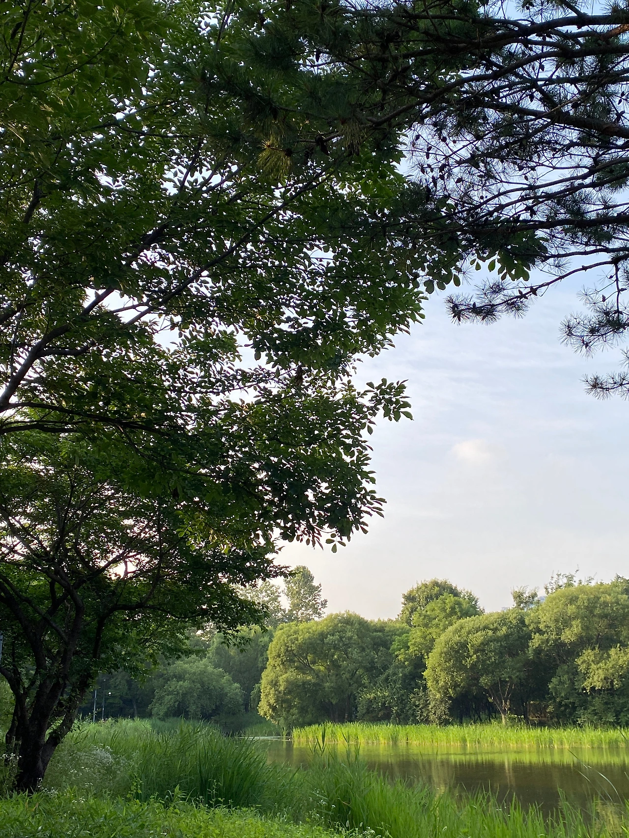 호수 주변을 걸으며 사진을 찍었다. 한 발 내딛고 사진 찍고, 또 한 발 내딛고 사진 찍고. 여름에 나무 근처의 물을 볼 때 가장 짜릿한 점은 물은 파란색이라는 생각의 틀을 깰 수 있다는 점이다. 나에게 여름의 물은 초록색이니까.
