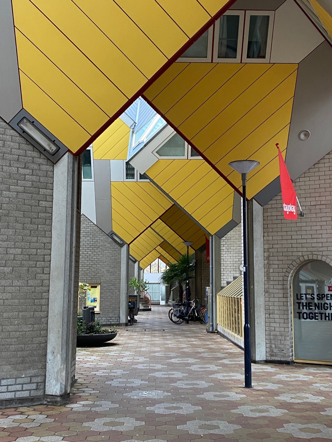 이렇게 여러 가지 특이한 건축물 중에 큐브하우스는 직접 들어가 볼 수 있었다. 큐브하우스는 앞서 언급한 피에트 블롬이 설계했는데 도시 안에 나무 같은 집, 숲 같은 마을을 만들고 싶었다고 한다.