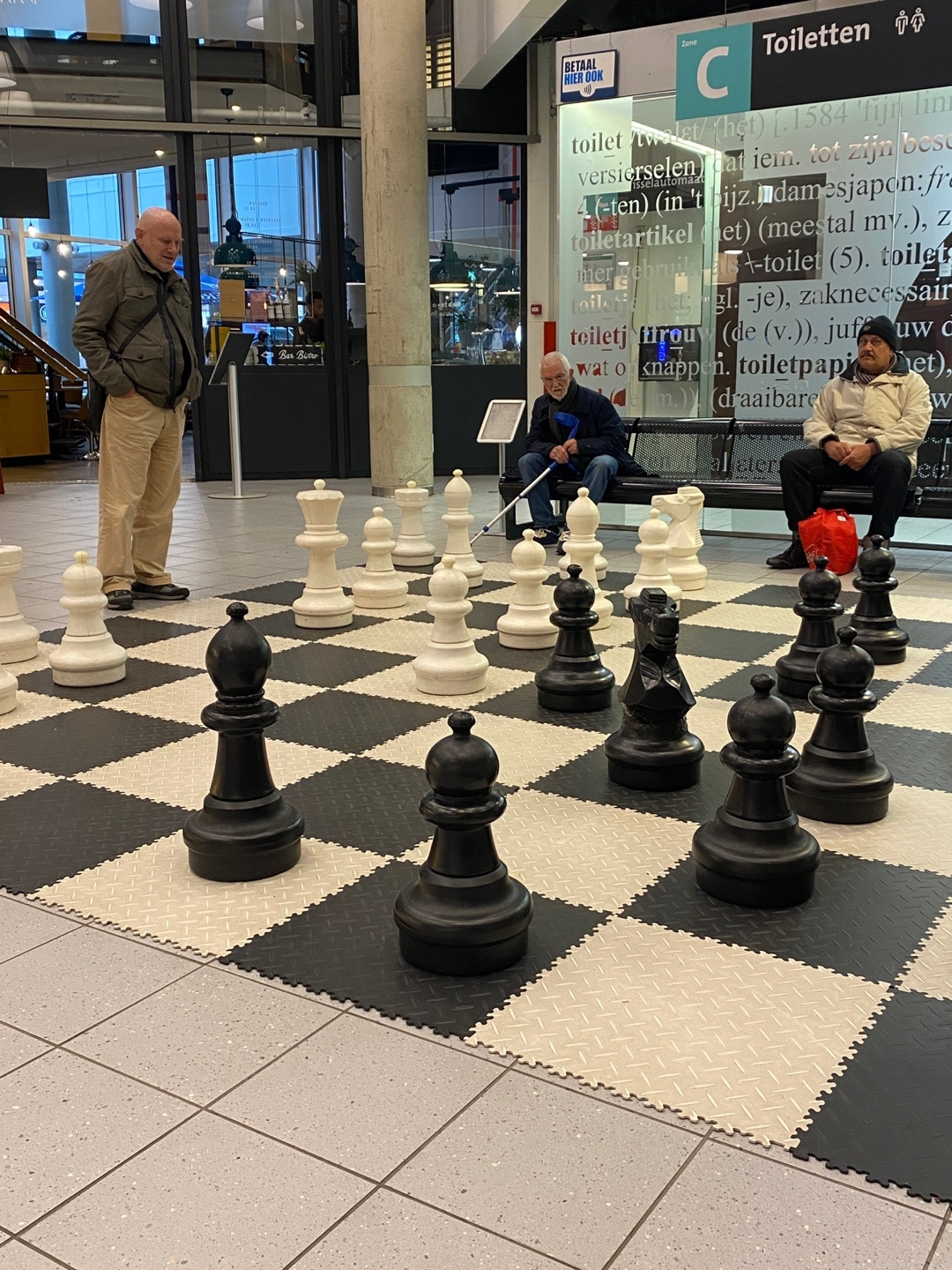 화장실 앞의 바닥 체스판에서 할아버지들이 체스에 열중하고 있었다. 체스의 룰은 모르지만 이 앞에 앉아 할아버지들의 체스를 지켜봤다. 다음에 로테르담에 다시 온다면 그때는 나도 할아버지들과 체스를 하고 싶다는 생각을 하게 했다. 길거리에서, 공원에서 장기를 두는 우리나라 할아버지들의 모습이 스쳐 지나갔다.