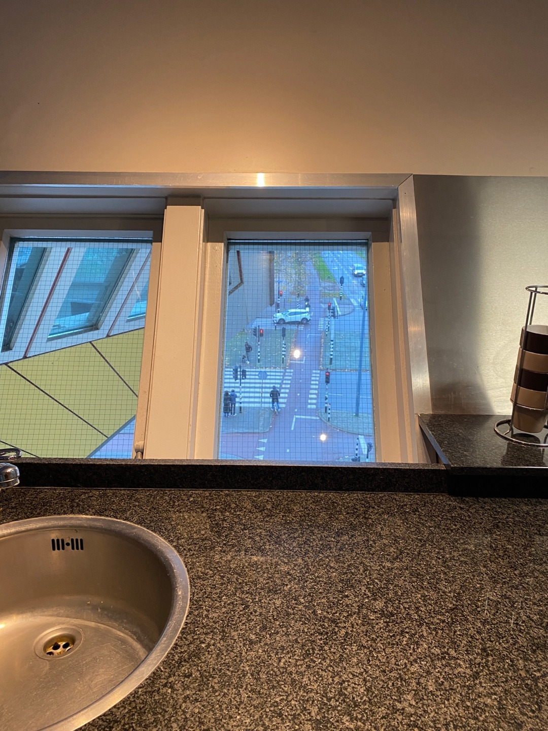 입장료를 내고 큐브하우스에 입장했다. 생긴 것에서도 예상할 수 있듯이 내부의 구조가 특이했고 계단이 많았다. 가장 좋았던 것은 주방으로 꾸며진 곳에서 비스듬히 길을 건너는 사람들을 내려다볼 수 있다는 것. 가장 많이 들어오는 질문을 정리한 표도 벽에 붙어 있었는데 큐브하우스의 가격은 한화로 약 7억 원이라고 한다. 또 어떻게 창문을 닦냐는 질문에는 'wait for a rainstorm ;-)'이라는 유쾌한 답변이 적혀있었다.