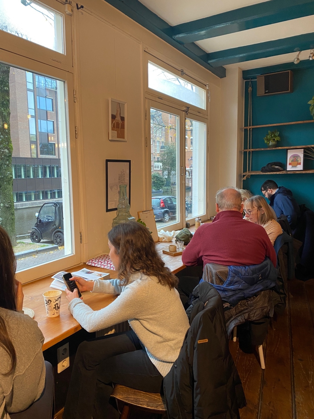 와보고 싶었던 곳이라는 로망을 느낄 새가 없었다. 바람과 닿지 않고자 손을 소매에 숨긴 채로 빠르게 걸음을 옮기며 Back to Black이라는 카페에 도착했다. 2020년에 일하던 회사 근처 독립서점에서 산 <아담 이브닝>이라는 책에 나온 카페였다. 암스테르담 광고회사에서 인턴을 하던 작가가 추천한 곳이라 저장해 뒀던 곳이다. 현지인들이 많아서 좋았고 추운 밖과 달리 안은 훈훈한 분위기였던 게 가장 기억에 남는다.