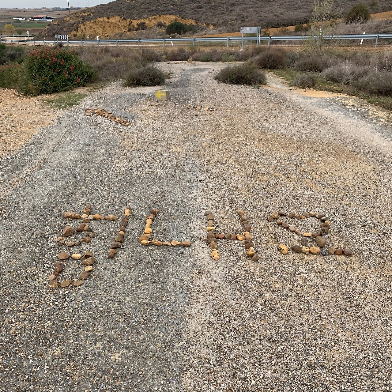 다시 신발끈을 묶고 쑥 언니랑 남은 거리를 2시간 반 컷으로 끊어보자며 호기롭게 출발했다. 한참을 걷다 발견한 의자에서 잠시 쉬어갈까 했는데 주서기가 오고 있다는 소식에 계획을 전면 수정했다. 원래 쉬려고 했던 시간의 절반만 쉬고 바로 출발. 우리가 출발했던 곳보다 훨씬 떨어진 마을에서 출발했는데 벌써 근처까지 왔다는 말에 같은 사람이 맞나 하는 의문도 잠시, 이렇게 걷다가 길 위에서 마주치면... 의욕이 저 끝까지 떨어질 것 같았다.
