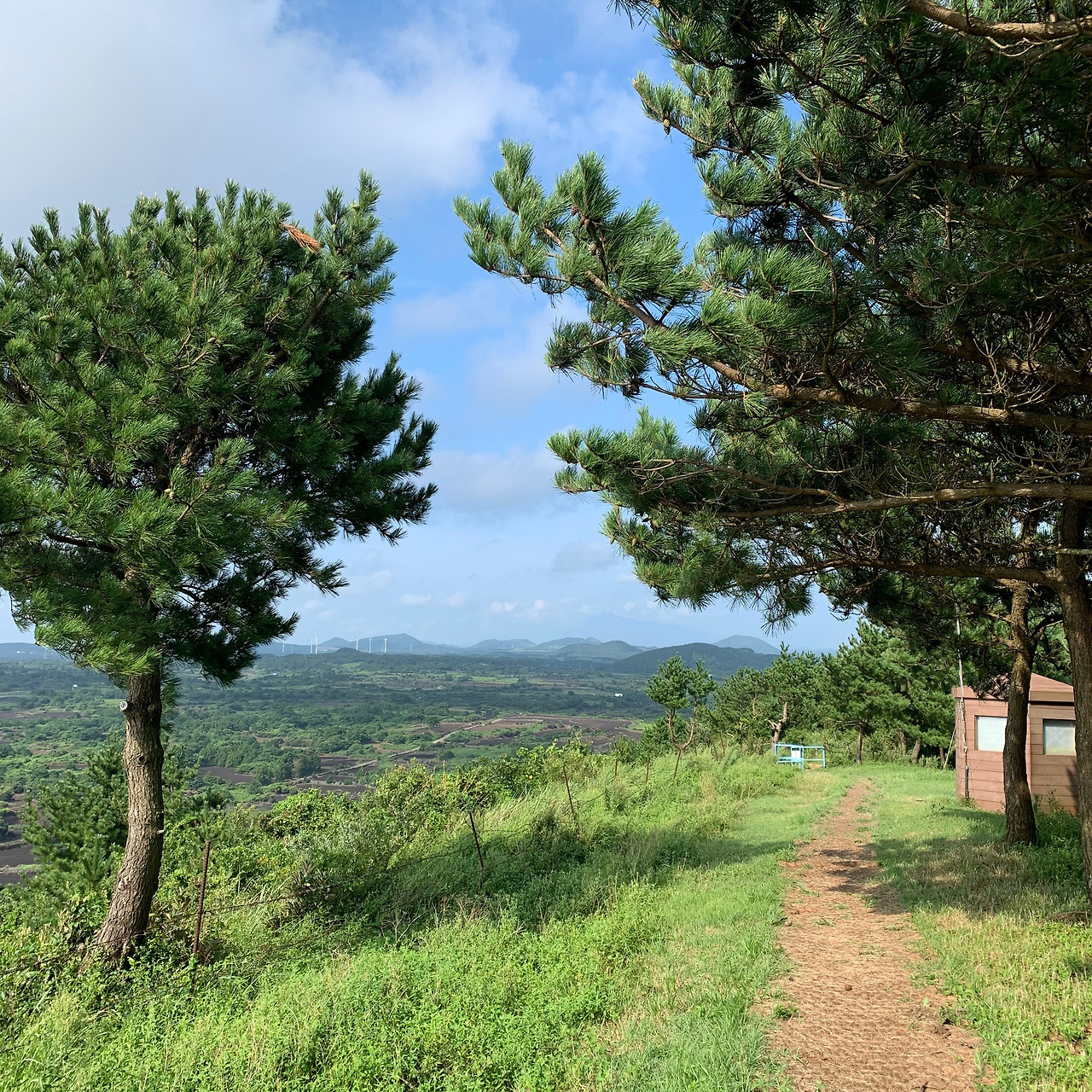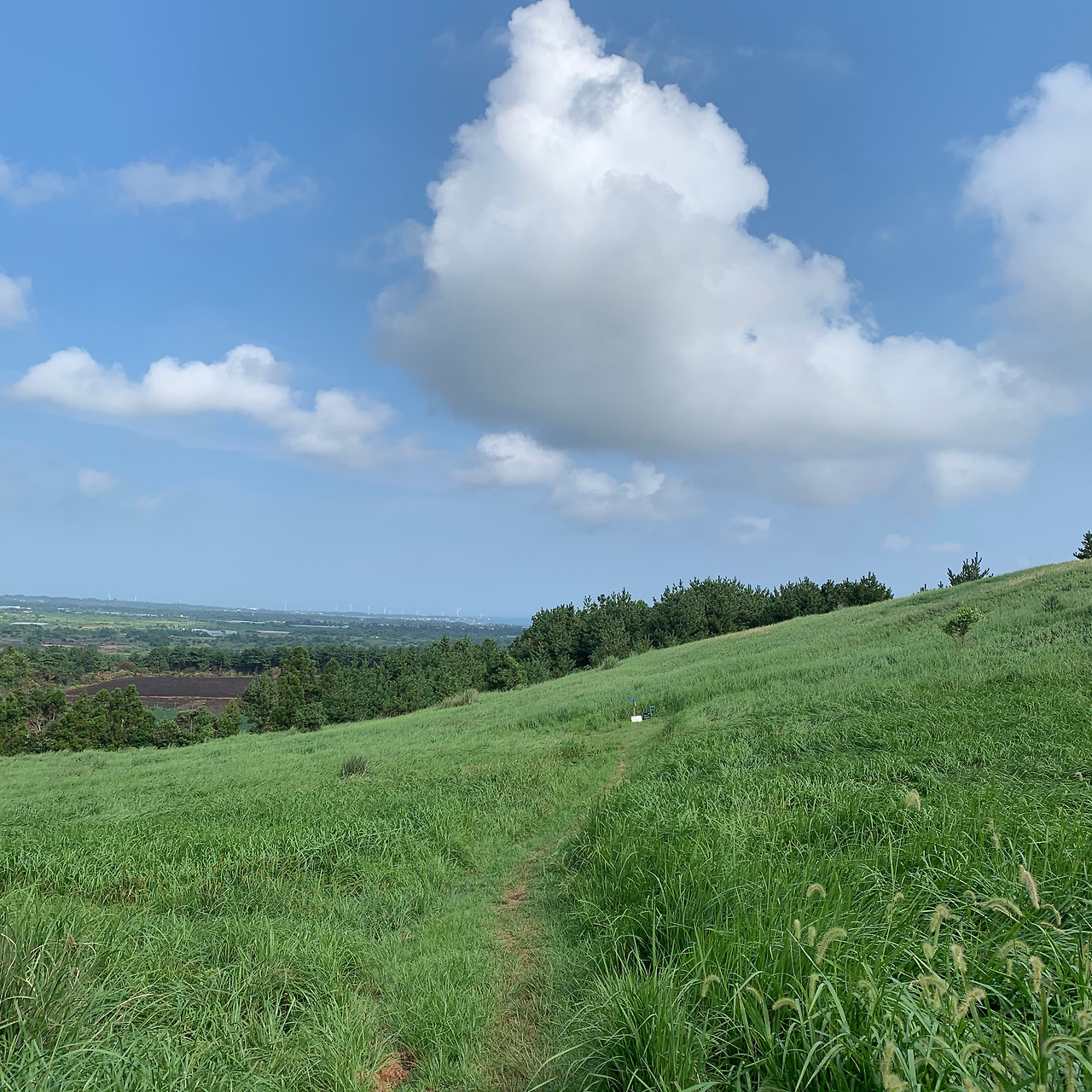 말의 머리처럼 생겼다는 말미오름은 오르는데 10분이 채 걸리지 않았고, 금세 한눈에 마을을 담을 수 있었다. 길쭉한 푸른 풀 속을 헤치고 가다보면 새 알을 닮았다는 알오름으로 이어졌다. 푸른 하늘색과 새하얀 구름, 싱싱한 청록색의 풀까지, 모두 어우러져 오래도록 눈에 담고 싶은 풍경이었다. 마음 같아서는 보고싶은 만큼 오래도록 보고 싶었다. 그러나 자비없이 내리쬐는 햇빛에 절로 고개가 숙여졌고 온몸이 녹아 내리는 상황이었기에 서둘러 걸음을 재촉했다.