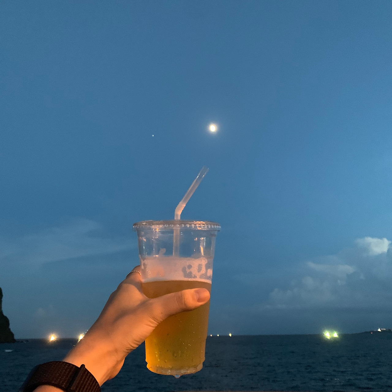 홀로 넓은 방을 쓴다는 사실에 기뻤지만 거울에 비친 모습을 보니 착잡했다. 이게 정녕 사람 얼굴이 맞는가... 급한대로 챙겨온 팩을 꺼내 화끈거리는 얼굴에 붙였다. 볼수록 암담한 이마와 팔을 보니 헛웃음만 나왔고 새로운 피부색을 받아들이기엔 시간이 꽤 필요했다. 도저히 맨정신으로 넘어가기엔 역부족이었다. 얼음 컵에 쫄쫄쫄 맥주를 따라 바닷가가 한눈에 보이는 자리에 걸터 앉았다. 크게 한모금 들이키니 조금 위안이 되는 거 같기도 하고.