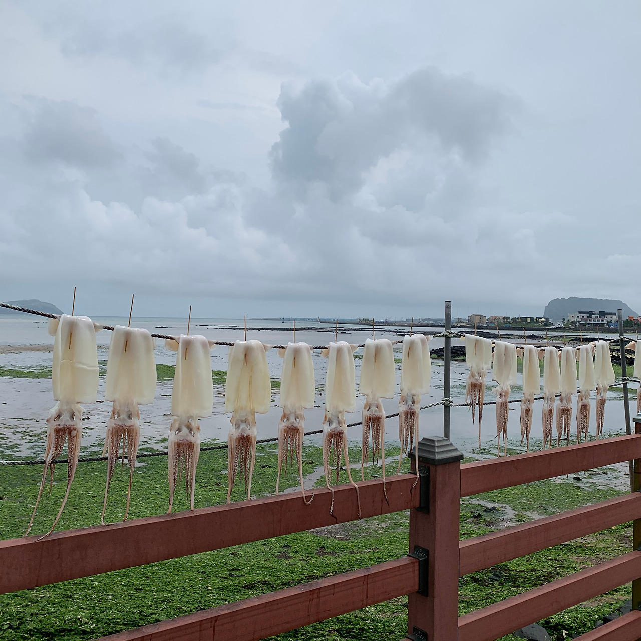 잠깐의 쉼터를 떠나니 바로 숨이 턱 막혔다. 감히 마주볼 수도 없을정도로 뜨거운 볕에 고개는 자연스레 아래로 향했다. 무인 책방도 지나고, 소금밭도 지났다. 주욱 널어놓은 한치들을 보며 살짝 입맛을 다시긴 했지만 목화휴게소는 지나치기로 했다.