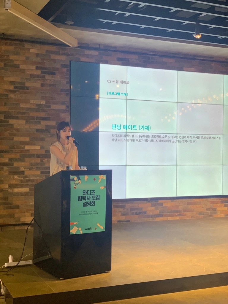 회사에서 적극적으로 신사업을 육성하기 시작한 시기였다. 메인 비즈니스인 펀딩 플랫폼을 바탕으로 성수에 공간와디즈 문을 열었고, IP사업, 스토어사업 등 새로운 사업 준비에 박차를 가하고 있었다. 당시 나는 ‘사업개발’로 커리어 방향성을 조준하던 때였다. 그동안 해 온 제휴는 대부분 신규 고객을 유치하는 마케팅 제휴였는데, 나는 직접 돈 버는 일을 해 보고 싶었다. 회사의 방향성과 개인의 커리어 골이 운 좋게도 잘 일치하여, 2년 전 기획했던 ‘펀딩메이트’ 프로그램을 사업화하여 ‘파트너사업’을 시작했다.