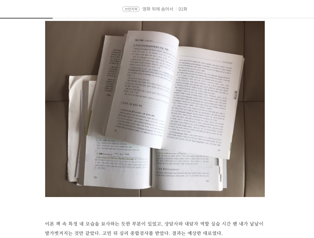 최근 큰 변화가 있었다. 몇 주 전 풀 배터리 검사(심리 종합 검사)를 다시 받았고, 내가 말 그대로 회복되고 있다는 사실을 알게 되었다. 이전에 쓴 글과 그림을 되돌아보고 <영화 뒤에 숨어서>로 엮으며 나 자신이 서서히 달라지고 있음을 느꼈다. 그렇게 3년이 지나 재검사를 받고, 초조한 마음으로 일주일 조금 넘게 기다렸다.