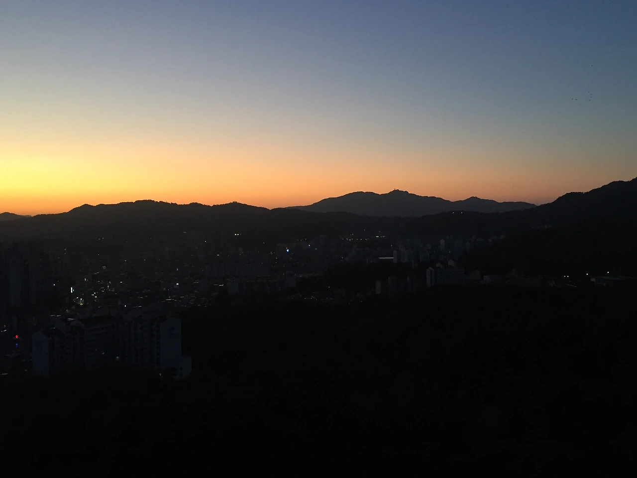 지금 서달산 뒤로 해가 뜨기 시작한다.