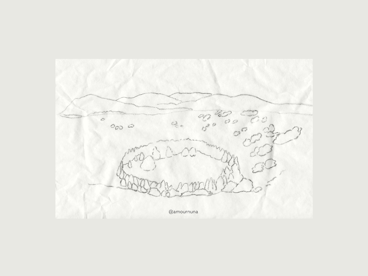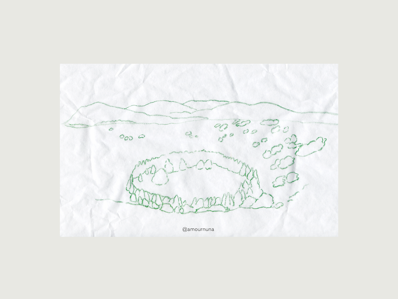 제주도 오름을 특히 좋아한다. 화산이 만든 거친 듯 유려한 형체가 하늘, 땅을 반씩 섞어놓은 것 같다. 아직 금오름 한 곳밖에 못 가봤지만, 다음 기회에 다른 오름들도 전부 갈 테다. 오름을 좋아하듯, 내가 추구하는 그림과 글도 조금은 거칠고 또 자유로운 듯 정돈된 느낌이다.