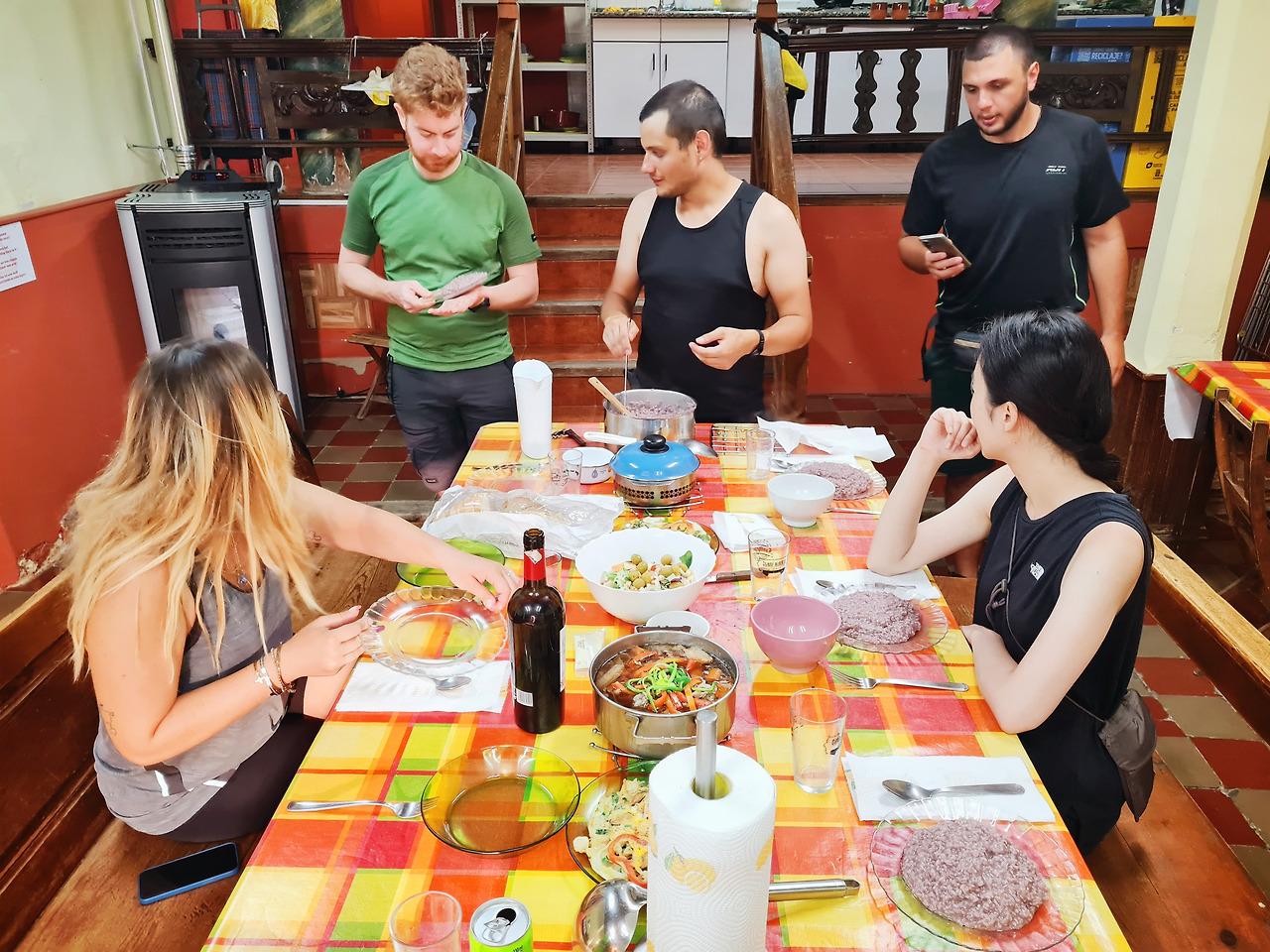 숙소에 도착해 바로 준비를 시작한다. 저녁을 먹기엔 이른 시간이지만 찜닭은 오래 끓일수록 국물이 살고 야채가 부드러워지며, 파전 반죽은 미리 만들어두어도 상관이 없기 때문이다. 이탈리아 친구들도 다 같이 먹을 리소토를 만들기로 했기 때문에 부엌이 너무 혼잡해지기 전에 미리 만들어 두는 게 좋다. 오랜만에 한국 음식을 만드니 신중해진다. 숙소에 간장이 있는 줄 알았는데 데리야끼 소스였다. 데리야끼 소스는 간장보다 덜 짜고, 더 달기 때문에 설탕 대신 소금으로 간을 맞춘다. 이미 주사위는 던져졌다. 어떻게든 한국 요리의 풍미를 살려야 한다. 나은은 찜닭에 파프리카를 넣고 싶다고 제안했다. 국물도 이미 간장이 아닌 데리야끼로 우렸는데, 안될 건 없었다. 흐물 해진 파프리카는 맛이 없기 때문에, 마지막에 데울 때 넣기로 했다. 내가 찜닭으로 고군분투하는 동안, 그녀는 해물 파전 반죽을 준비했다.