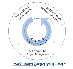 셋째. 소시오크라시의 참여와 합의이론을 따랐다. 소시오크라시는 사이버네틱스에 기반한 자율경영 조직개발론이다. 사이버네틱스는 각 부문의 자율적 운영과 전체의 통합된 경영이 조화를 이루고 시너지를 내는 방법에 대한 이론이다. 즉, 소시오크라시는 개인의 자유의지를 존중하면서 동시에 시장 경제가 요구하는 생산성을 더욱 높이려는 시스템이다. 소시오크라시의 핵심 중 하나는 목적에 대한 합의다. 효과적인 의사소통 체계를 만들어 조직 공동의 목적을 이룰 수 있는 탁월한 업무관리 방법을 제시 한다. 밸류업은 소시오크라시의 업무평가 방식과 프로세스를 참조했다. [링크 컨설팅 참조]