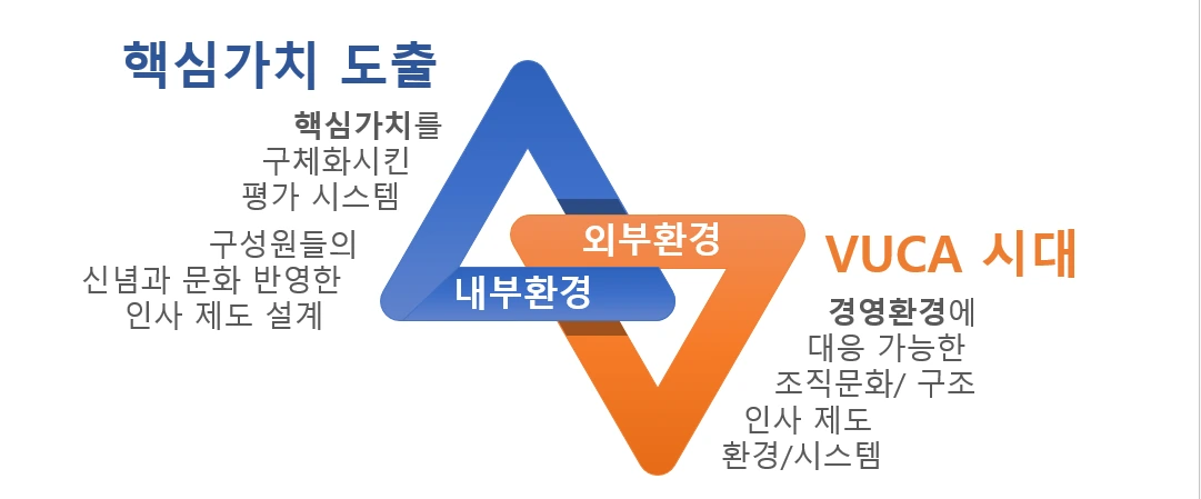 일의 즐거움, 의미, 성장은 높이고 타성을 방지하는 인사평가제도를 고민했다. 비상교육의 평가제도인 밸류업, 그 명칭 그대로 구성원을 육성하여 성장시키고, 그 결과 조직은 성과를 낼 수 있도록 가이드를 하는 제도의 구현된 모습이 무엇일까? 현장의 소리를 듣고 이론을 공부하고 끊임없이 토론했다. 이 시대의 바람직한 조직문화, 제도란 일의 의미와 즐거움을 높여주는 것이라고 정의했다. 평가제도도 일의 의미와 즐거움을 높여주는 제도, 성장을 이끄는 제도로 재설계하려고 했다.