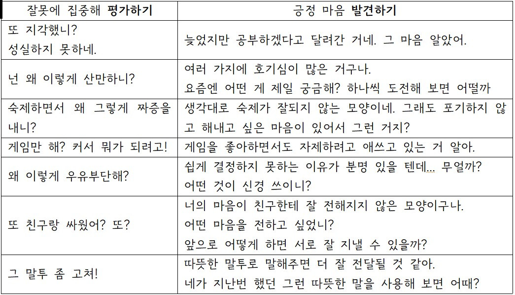tip : “친구를 실망하게 만들기 싫었구나.”처럼 마음을 그대로 읽어주는 한마디가 중요하다.