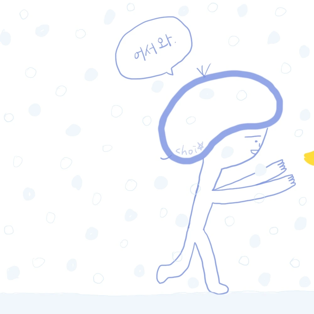 눈이 펑펑 오는 날 카페에서