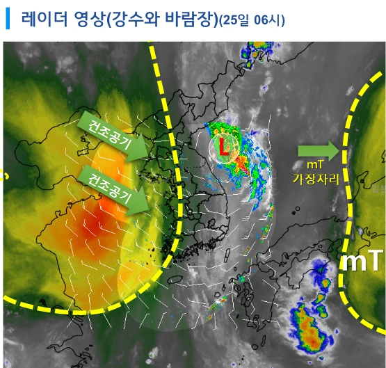 위성 영상에서 보이듯, 건조한 공기가