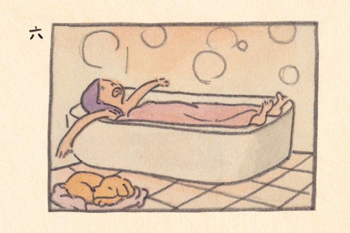 이 작은 욕조에, 따뜻한 물에 몸을 담그며