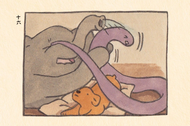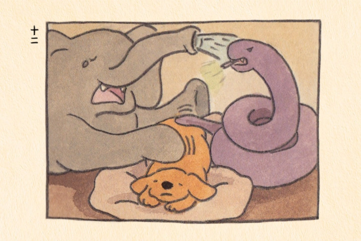 나의 등을 쓰담쓰담하며 계속해서 싸우는 코끼리와 뱀 남매.
