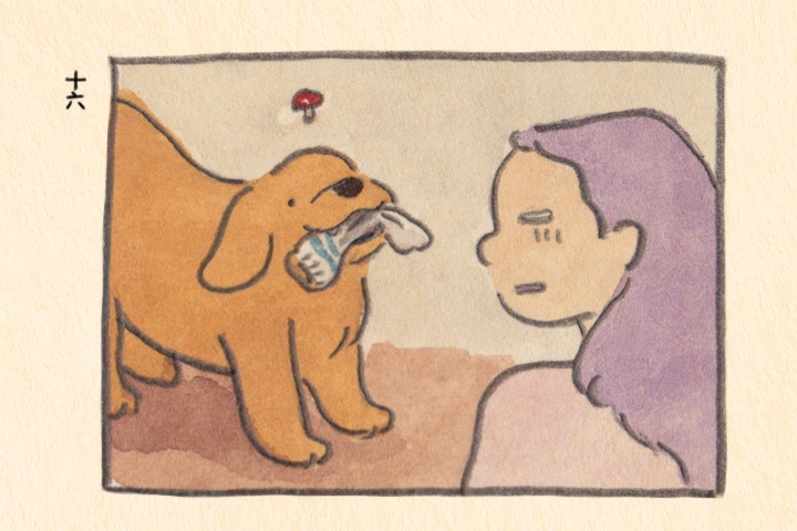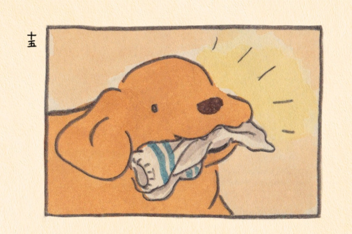 나는 잠든 나의 보리의 입에서 냄새나는 양말을 빼놓는다...