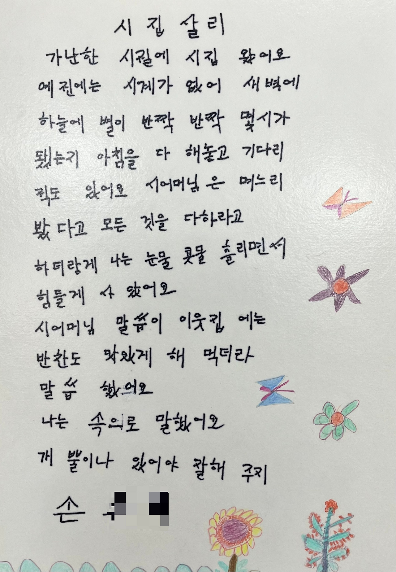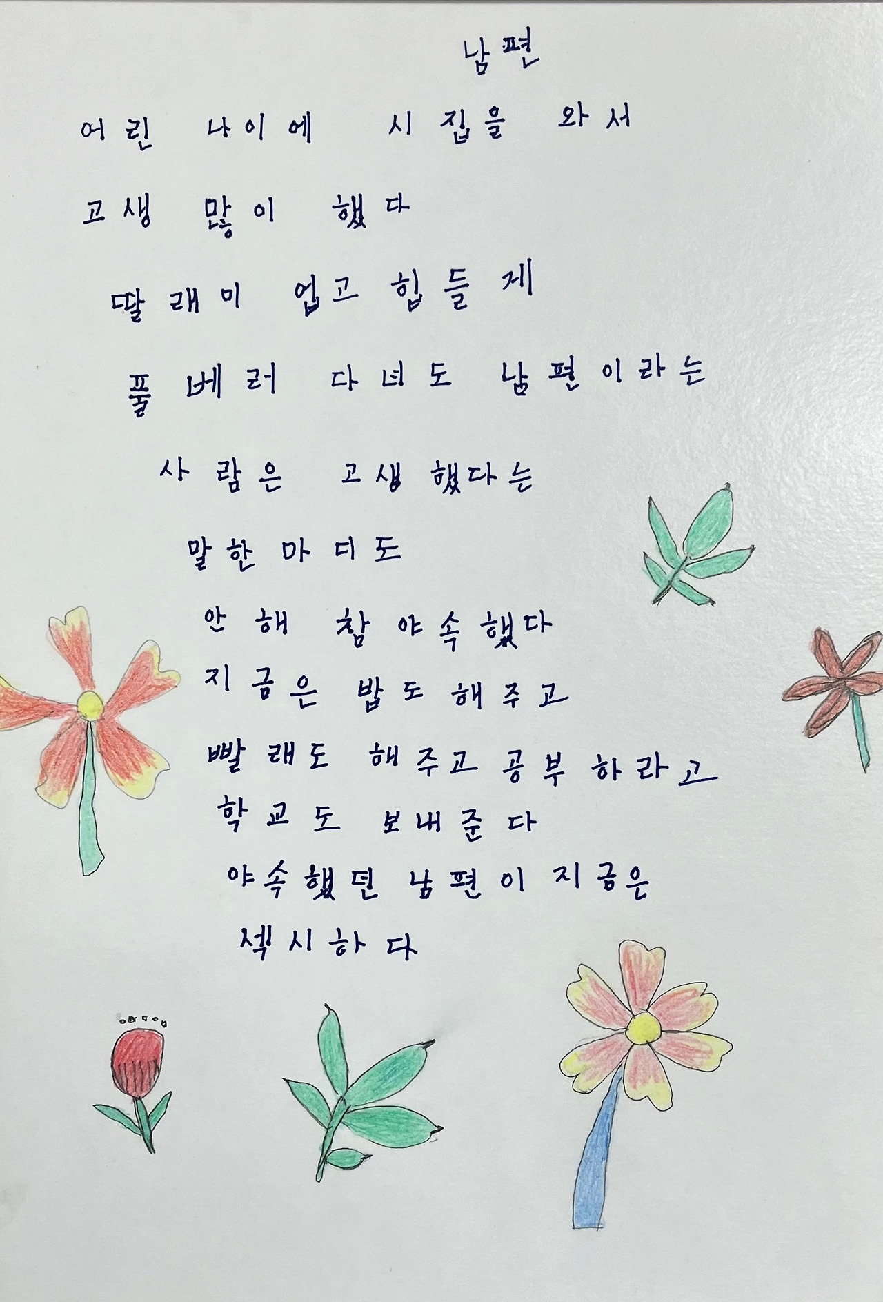 말 못 할 사연들을 거침없이 써 내려갔다. 삶은 저절로 시가 되고 어르신들은 시인이 되었다.