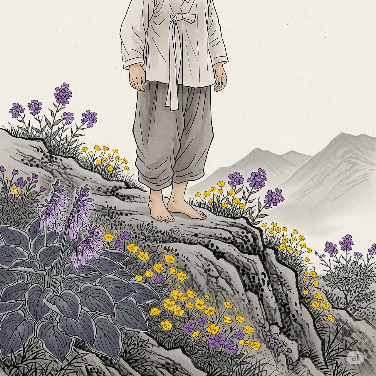 오늘 능경봉에서의 식물 탐사는 단순한 관찰을 넘어, 발바닥을 통한 깊은 성찰의 시간이었습니다. 우리 산하의 소중한 식물들을 만나고, 그들의 생명력 속에서 저 자신의 존재를 다시금 깨닫는 귀한 날이었습니다. 자연은 언제나 우리에게 가장 진실한 가르침을 건네줍니다. 이 발바닥 명상을 통해 얻은 평온함과 지혜를 삶 속에서 꾸준히 이어가며, 자연과 더불어 살아가는 지혜를 더욱 깊이 탐구하려고 합니다.