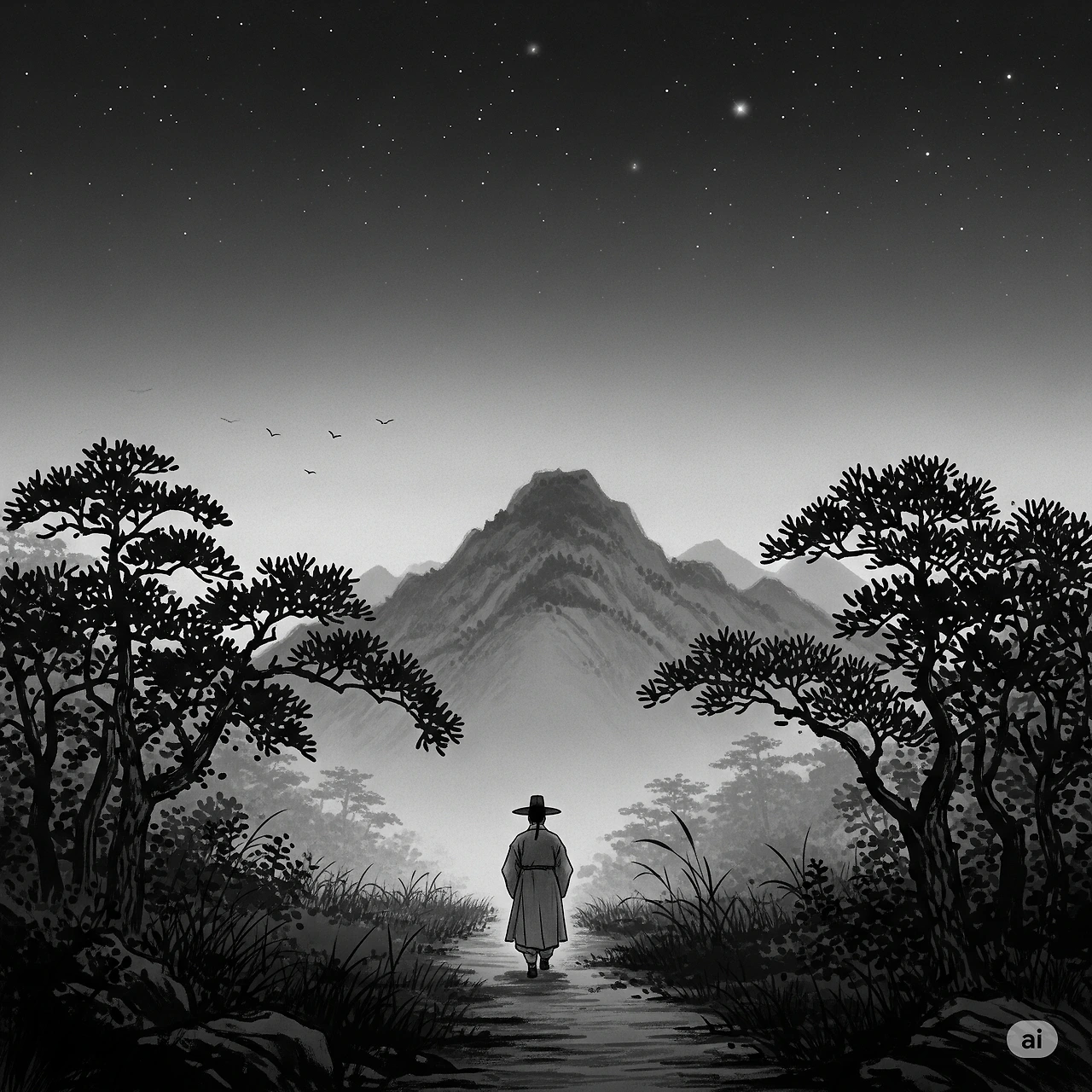 새벽 3시 35분, 평소보다 5분 늦은 시각, 나는 칠흑 같은 어둠 속으로 발을 내디뎠습니다. 별은 떠 있었지만 그 빛으로는 길을 분간하기 어려웠죠. 그저 익숙한 발바닥의 감각에 의지해, 뿌옇게만 보이는 길을 따라 산을 올랐습니다. 지금은 다시 하산하는 길, 앞이 보이지 않을 정도로 깊은 어둠이 저를 감싸고 있습니다.