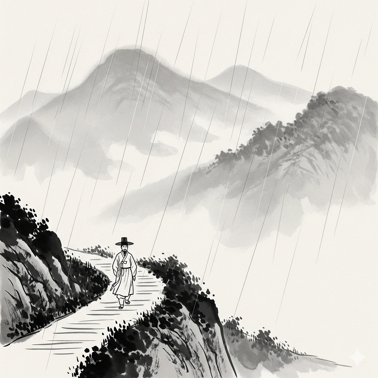 비 내리는 새벽 3시 29분, 우산을 쓰고 산을 내려가기 시작합니다. 비가 때로는 거세게 쏟아지기도 합니다. 일주일간 쌓인 피로 탓에 몸은 천근만근이었지만, 핑계를 대고 싶은 마음보다 ‘습관’이 나를 먼저 깨웠습니다. 비에 젖어 미끄러운 흙길과 오늘따라 유난히 거칠게 느껴지는 돌멩이는, 우산을 뚫고 쏟아지는 빗소리와 함께 발바닥을 통해 온몸으로 전해져 옵니다.