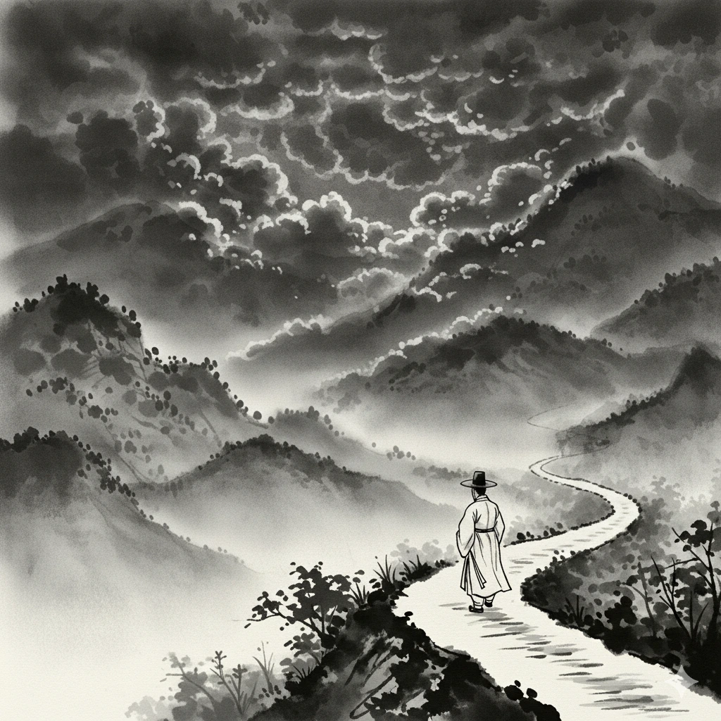 2025년 9월 9일 화요일, 새벽 3시 28분. 온 산은 구름에 덮여 별 하나 보이지 않지만, 구름에 반사된 은은한 빛이 길을 훤히 밝혀줍니다. 어제 숨 가쁘게 달려온 하루의 피곤함을 잠시 내려놓고, 발바닥에 집중하며 새벽 산길을 내려가기 시작합니다. 발끝으로 느껴지는 차가운 이슬, 무거운 흙의 감촉, 그리고 밟을 때마다 미끄러지는 돌멩이의 저항까지, 모든 감각이 정신을 깨웁니다.