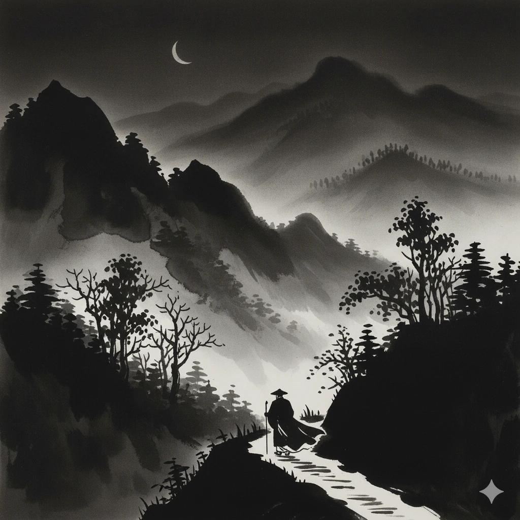 어둠 속, 발바닥으로 길을 더듬으며 산을 올라왔습니다. 오늘은 그믐달이 떠 있지만, 깜깜한 산길에선 아무런 도움이 되지 않습니다. 오직 발바닥의 감각만이 도움이 됩니다. 길의 단단함과 가끔 밟히는 나뭇가지의 바스락거림이 생생히 전해져 옵니다. 발은 내딛을 때마다 나를 깨웁니다. 이 길 위에서 저는 오직 발에 집중합니다. 그것이 바로 저만의 '발바닥 명상'입니다.