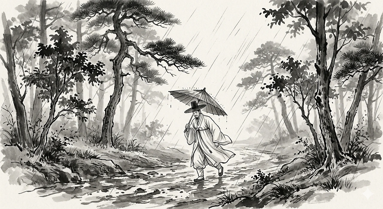주역(周易)에서 '수(水)'는 지혜를 뜻하지만, 때로는 험난한 고난을 상징하기도 합니다. 오늘 제가 걷는 이 미끄러운 빗길은 어쩌면 4월이라는 새로운 도약을 앞두고 거쳐야 할 정화의 과정일지도 모릅니다.