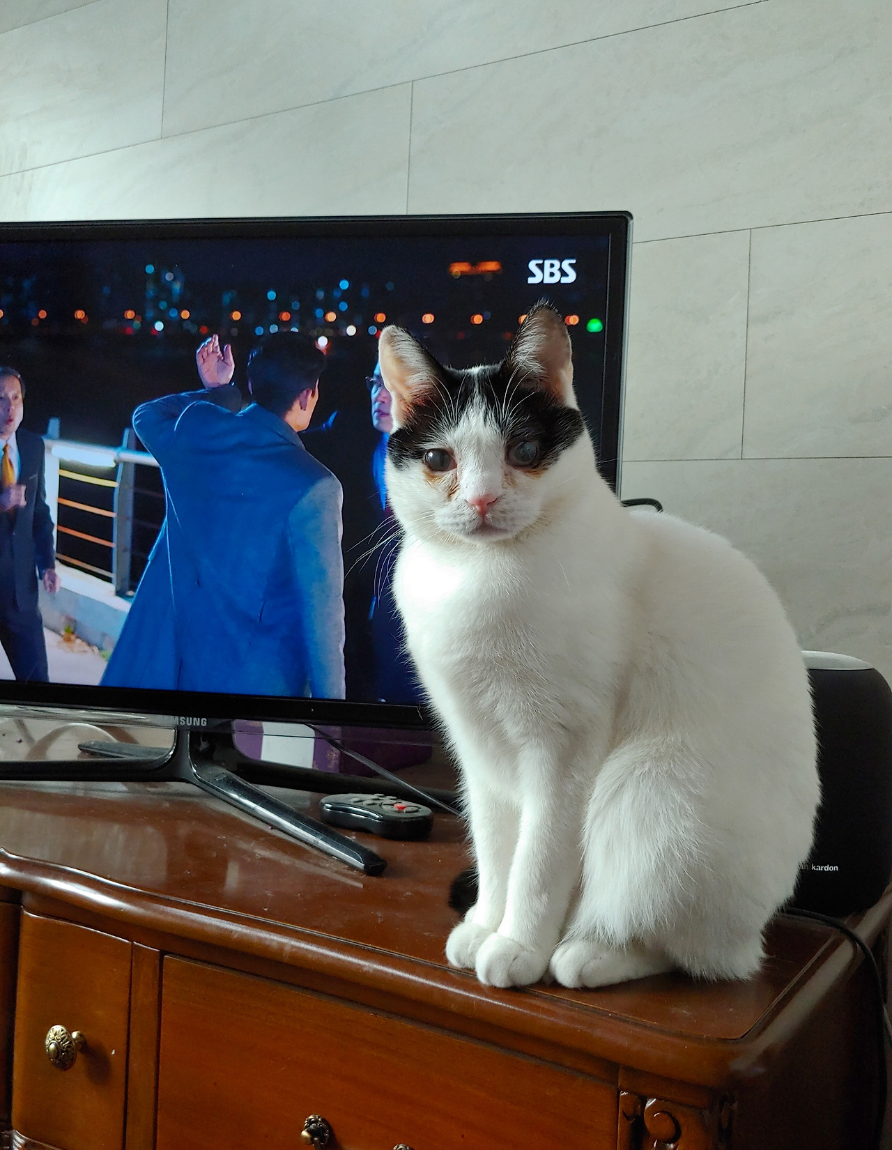 제가 매일 머리카락을 말릴 때마다 조용히 다가와 드라이기를 향해 냥냥 펀치를 날리죠.