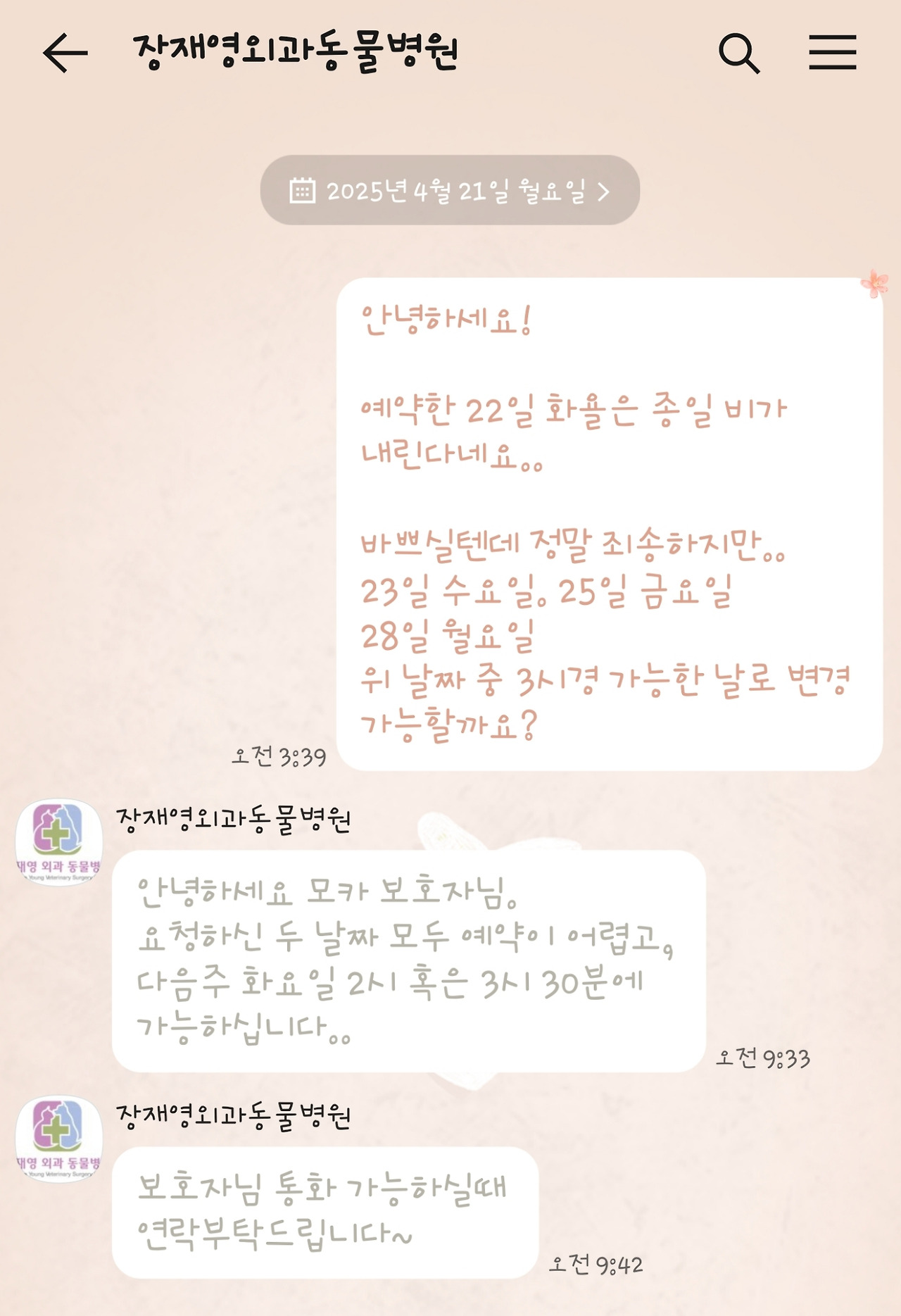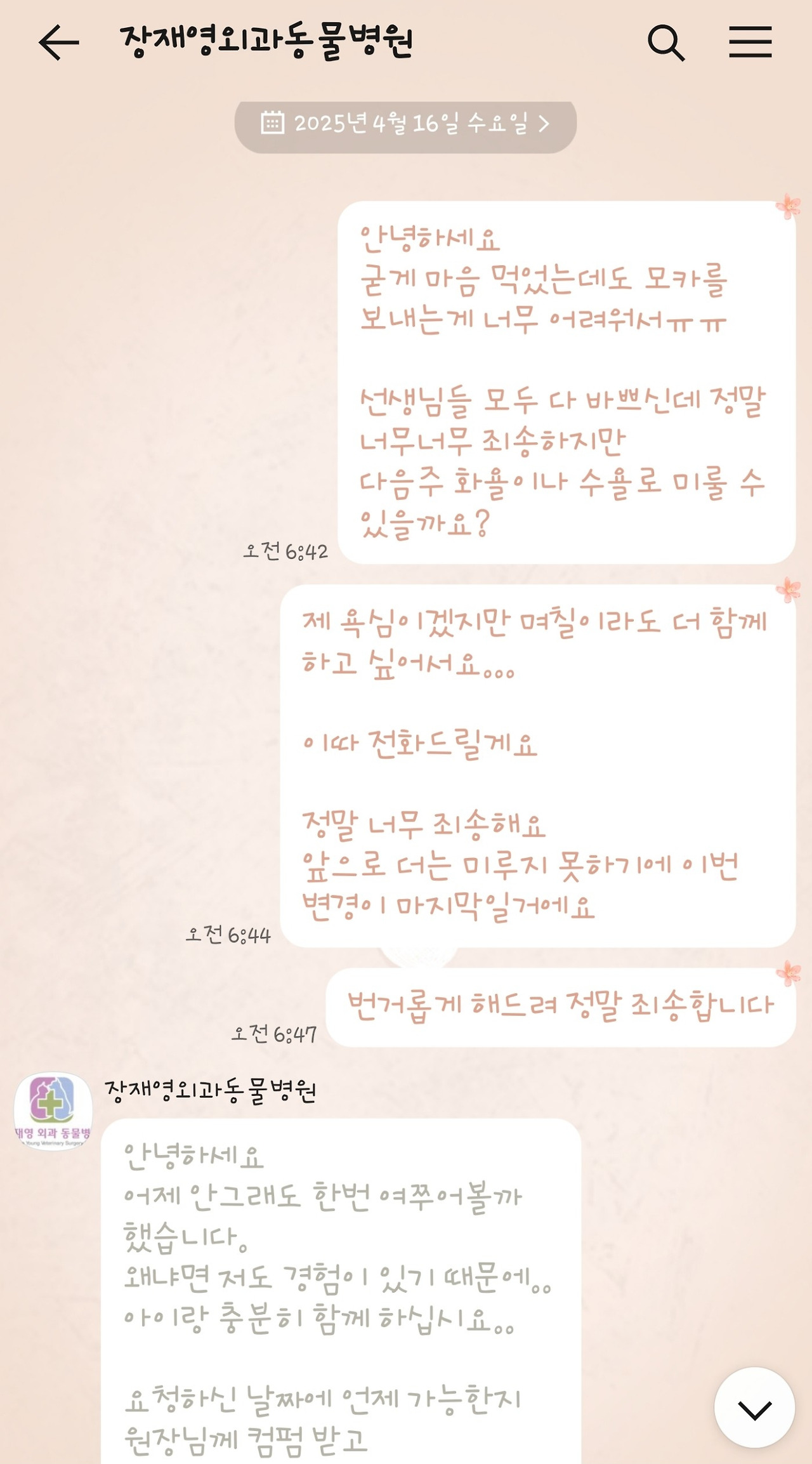 장재영 동물병원과 계속 소통하며 상의했지만,