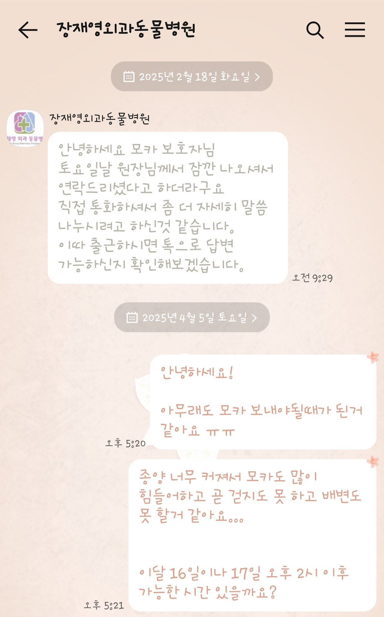 모카를 보내는 날에 대해 병원 측에서도 명확한 답을 주는 건 조심스러워했다.