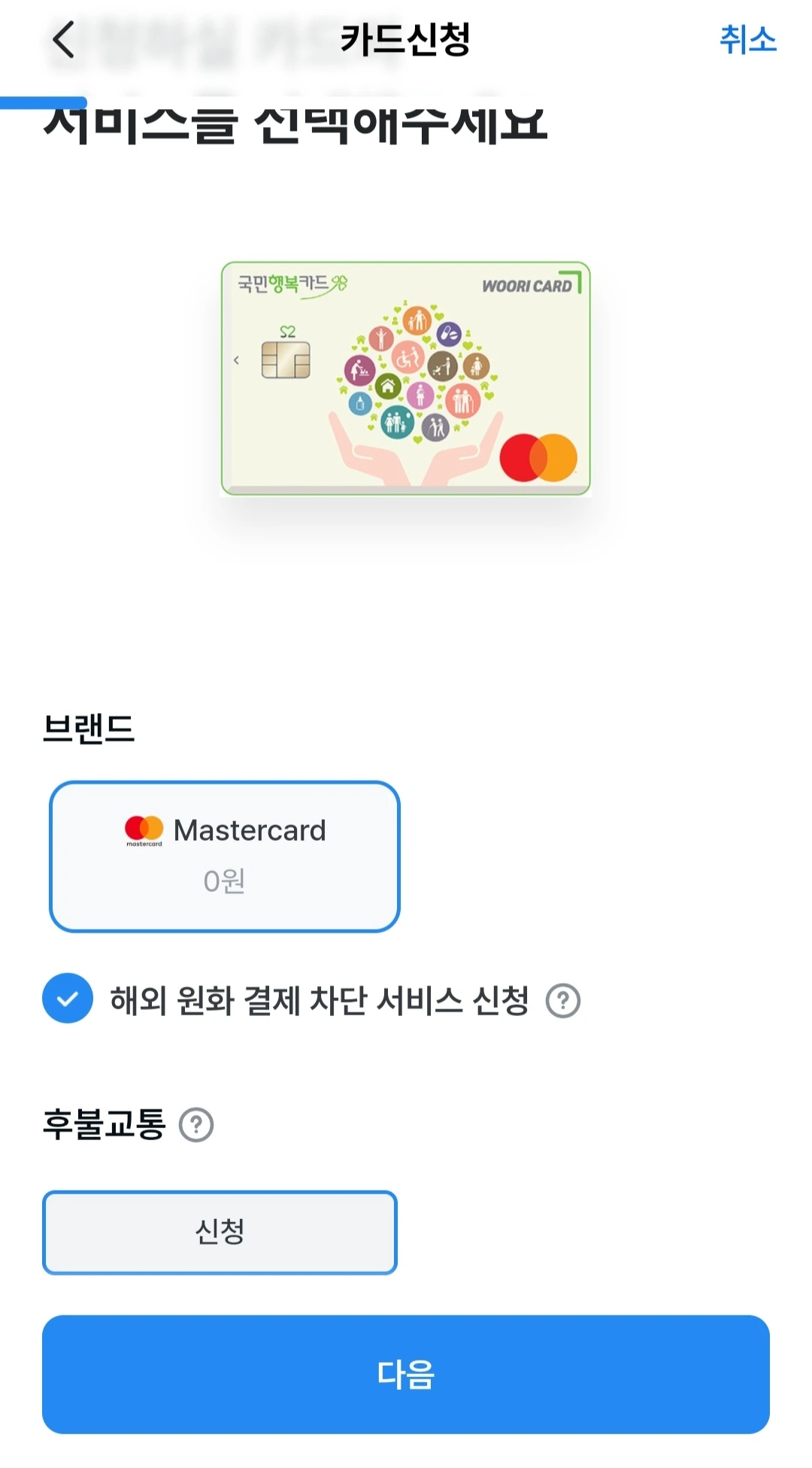 반드시 이 카드를 별도로 신청해야 한다.