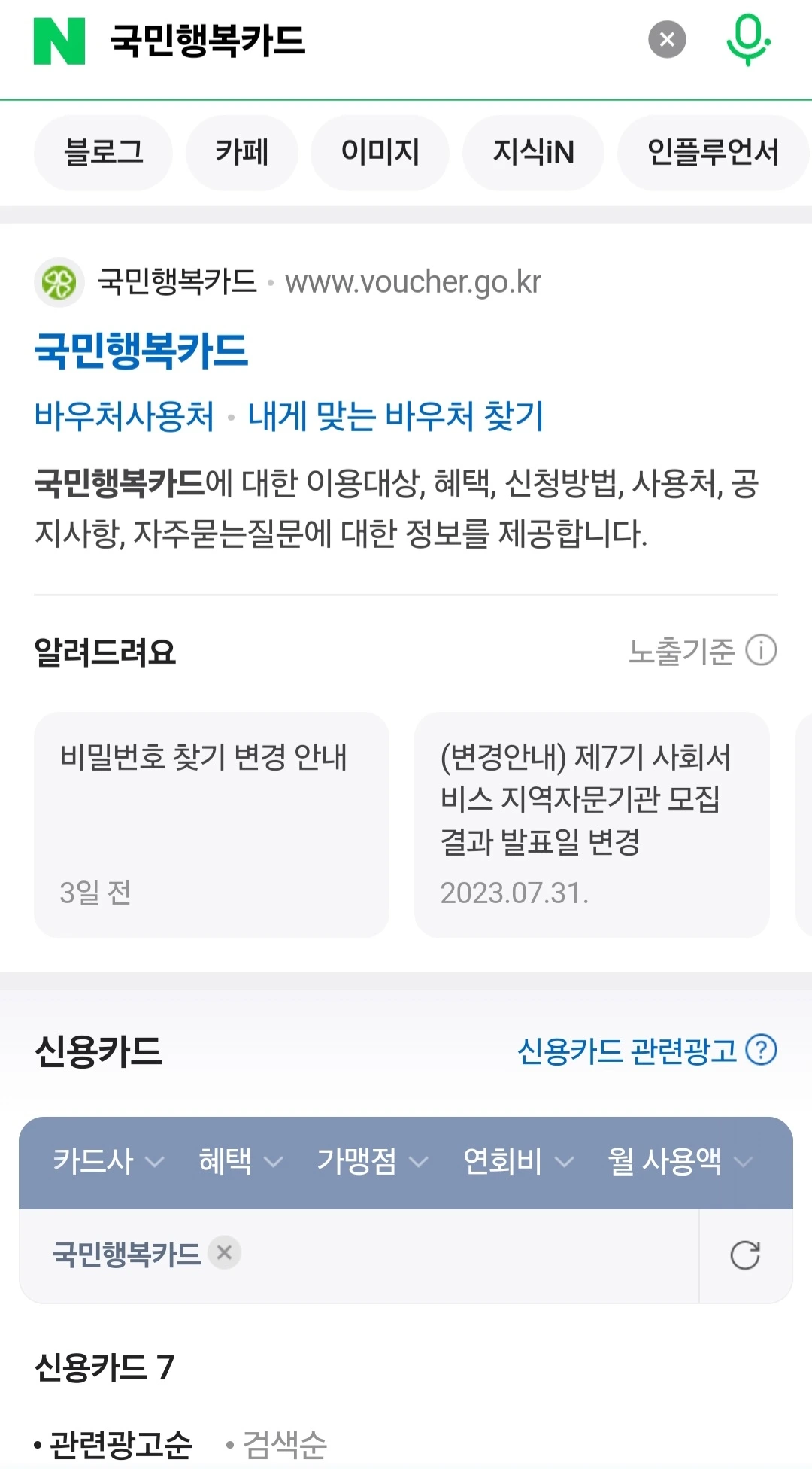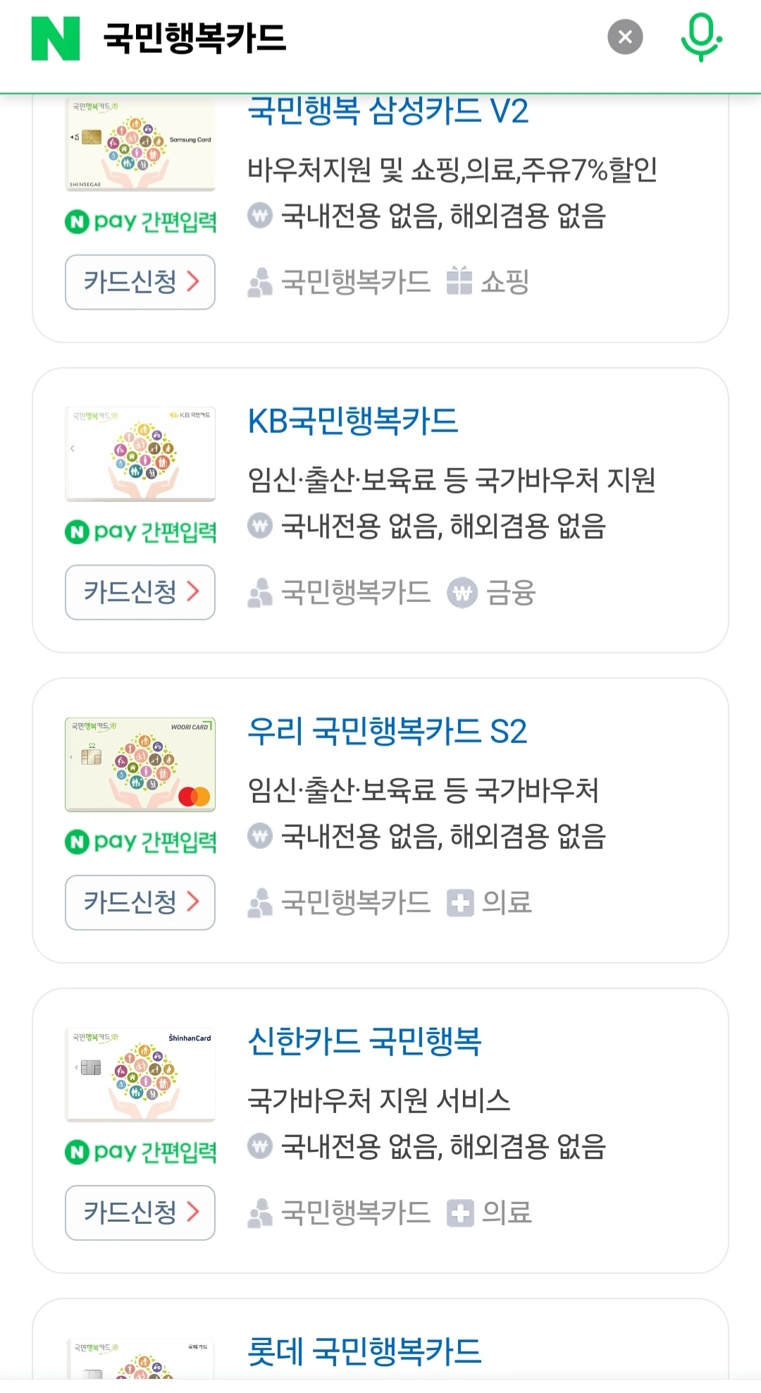 네이버 앱 이용 → 가장 간편하고, 여러 카드사의 국민행복카드를 한눈에 비교할 수 있음