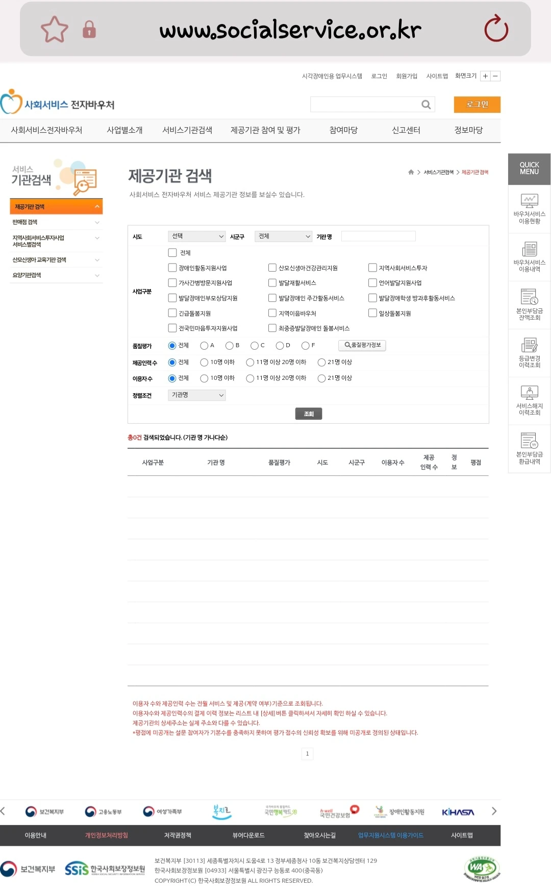 제공기관 확인 : 사회 서비스 전자바우처 홈페이지
