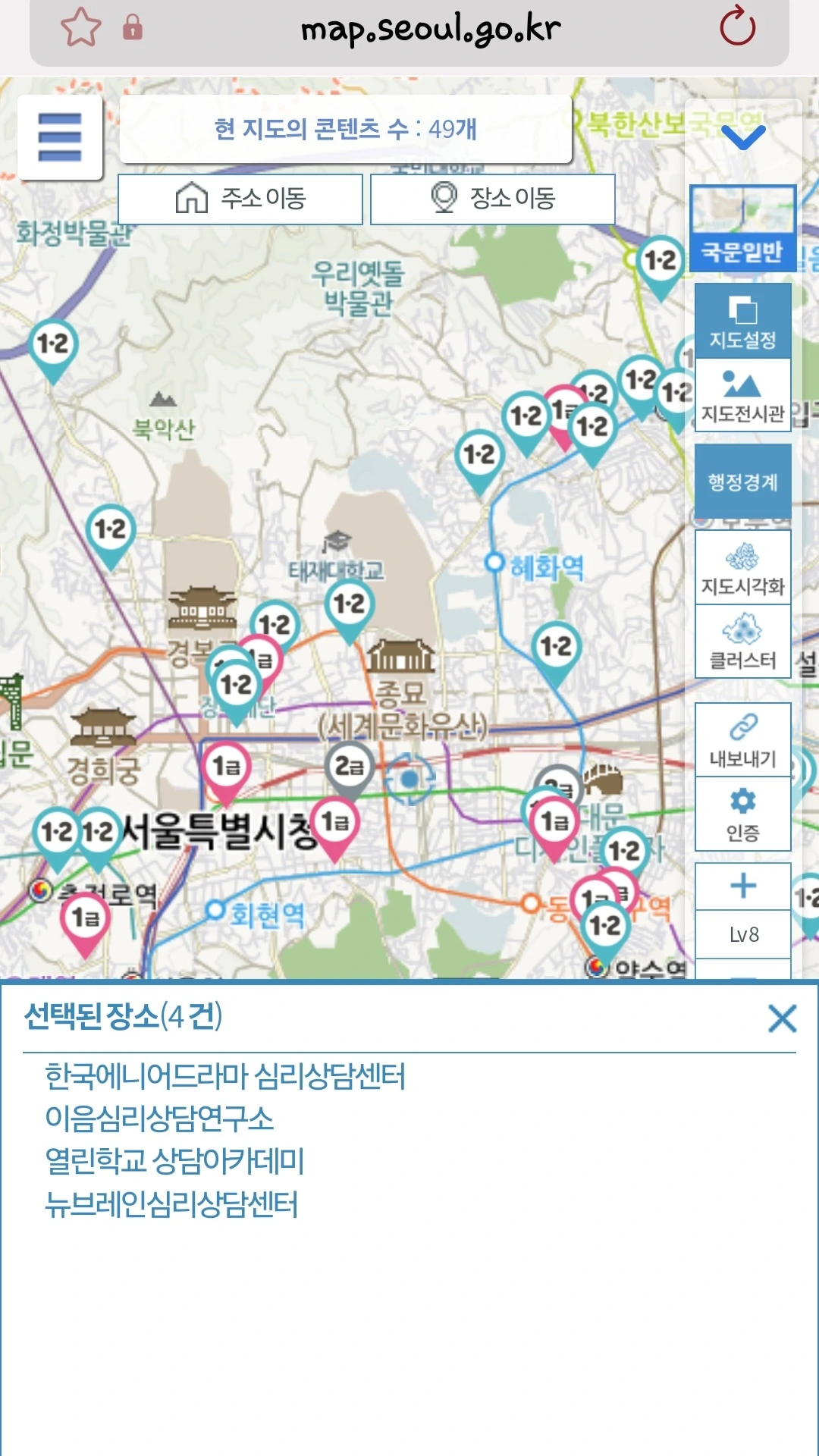 - 스마트 서울맵 : 마음투자 바우처 사용기관 확인이 가능하다.