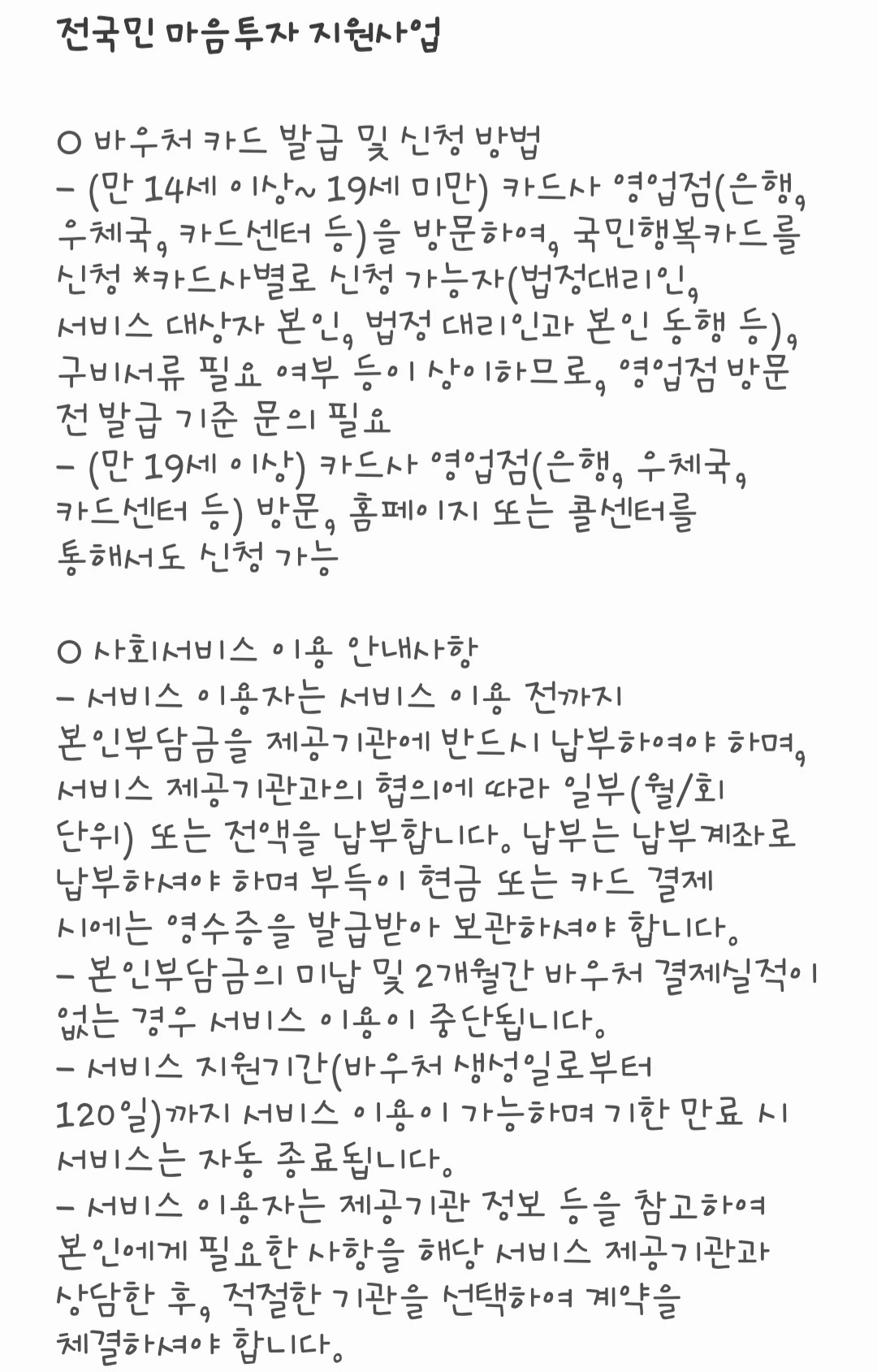 마음투자 지원사업 신청과 동시에 국민행복카드를 같이 신청하는 것을 추천드린다.