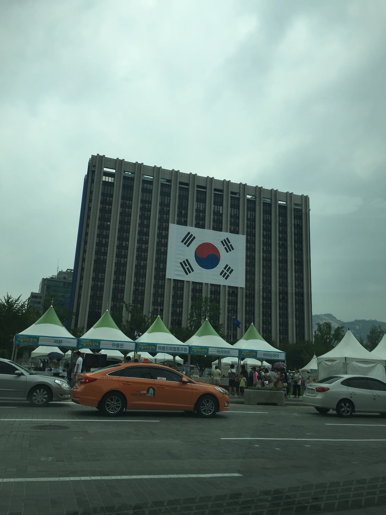 지난 광복절에는 사진에서 보는 것과 같이 대형 태극기를 청사 중앙에 설치하여 설명이 필요 없는 정부의 대표적 청사 건물로서의 이미지를 그대로 나타내기도 했다.