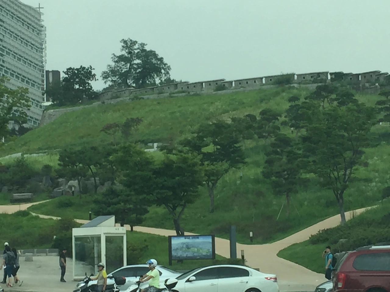 동대문 성곽 공원이 도로 변에서부터 서울성곽에 이르기까지 너른 녹지 공원으로 자리잡고 있다.