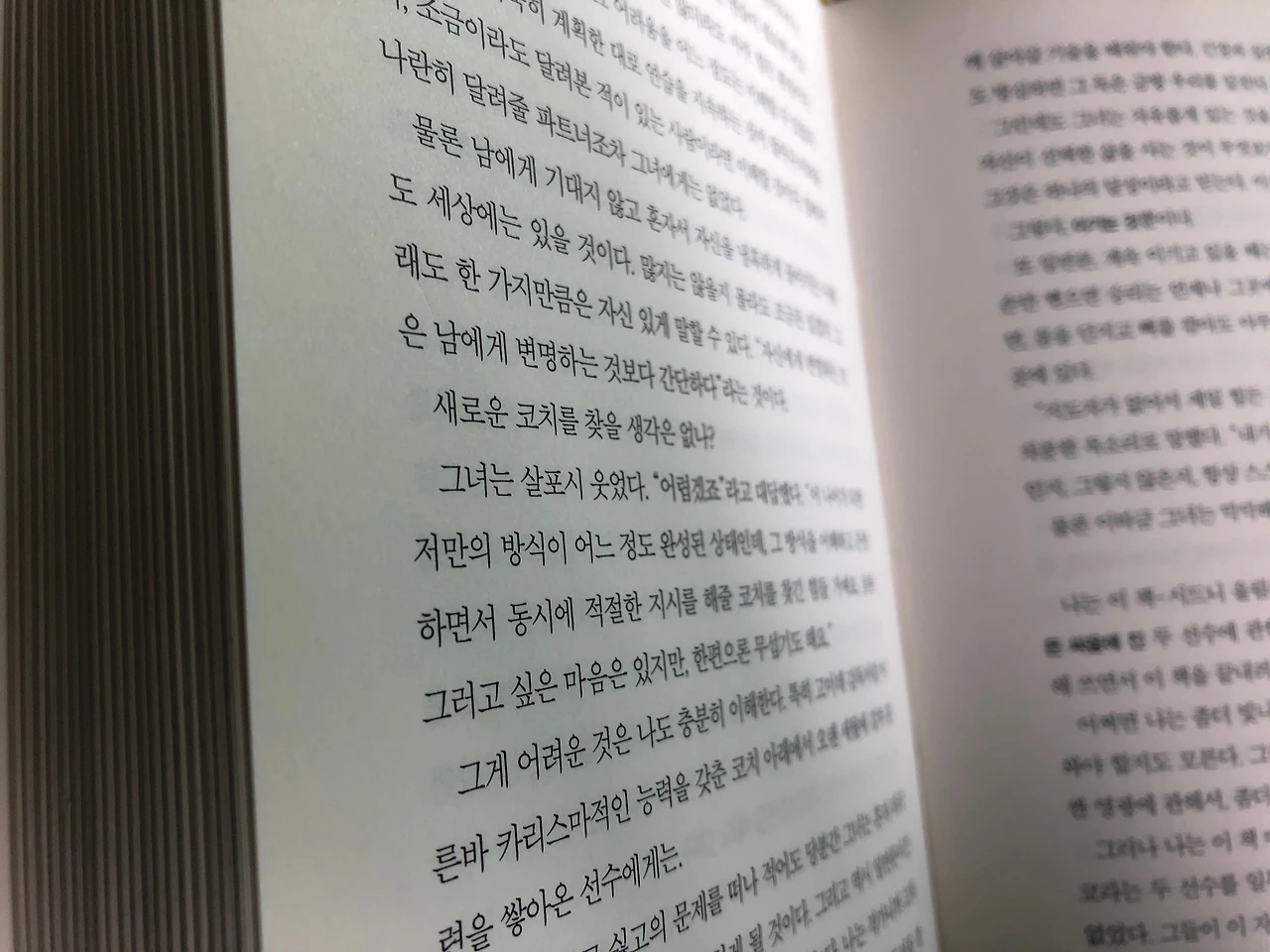 특히 마지막 부분에 기대주였으나 남자 마라톤에서 몇 킬로를 남기고 기권한 선수와, 이전 두 번의 올림픽에서 은, 동메달을 각각 받았지만 현역임에도 선발이 못되고 여자 해설가로 참석한 고참 마라톤 선수를 인터뷰한 내용은 책의 주제와도 밀접하게 연결되어 있는 듯합니다.