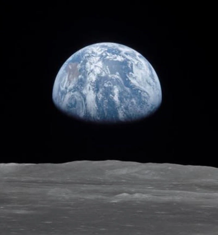 아폴로 8호의 우주인이 지구로부터 45,000km 떨어진 지점에서 달의 공전궤도에서 촬영한 지구는 달의 입장에서 지평선에 떠오르는 하나의 푸른색 구슬 같은 모습이었던 것입니다.