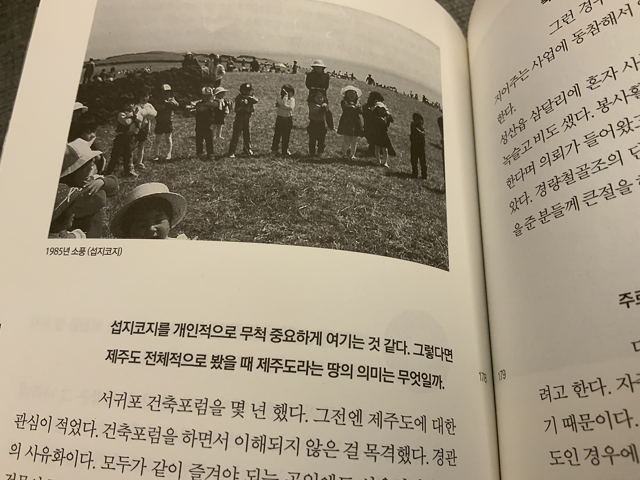 하지만 책 속 몇몇 건축가들은 그들의 유년 시절을 통해 기억되던 섭지코지가 기업에 의해 사유화된 이후 얼마나 많이 훼손되었는지 이야기합니다. 그들에게 적지 않은 지지를 받던 안도 타다오가, 유독 섭지코지에는 훼손에 일조하는 대표적인 건축물 글라스하우스를 남긴 것에 대해 아쉬운 마음을 드러냅니다.