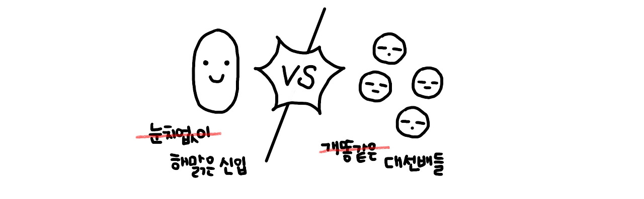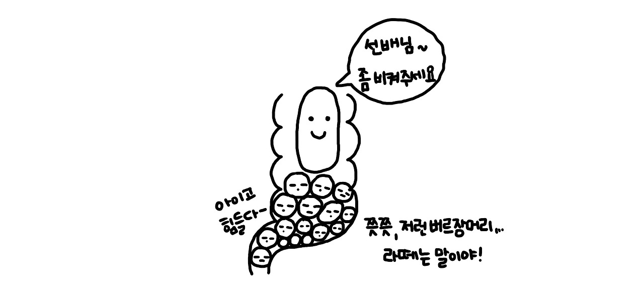 우유에 떠밀려 신나게 나오려는 신입들 덕에 배는 아파오는데 이미 돌덩이처럼 굳어버린 고인 물 선배들이 출구를 꽉 막고 있었다!